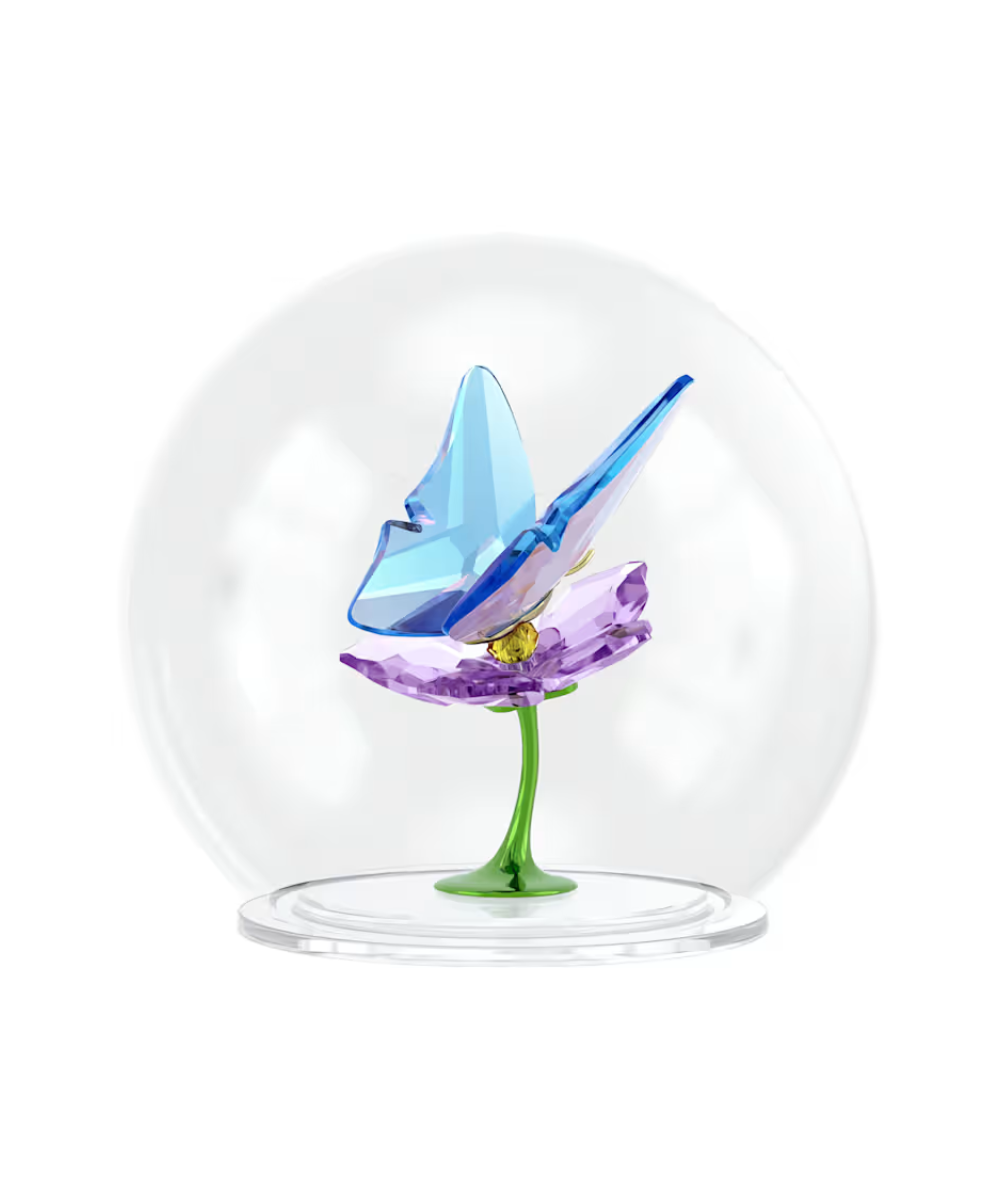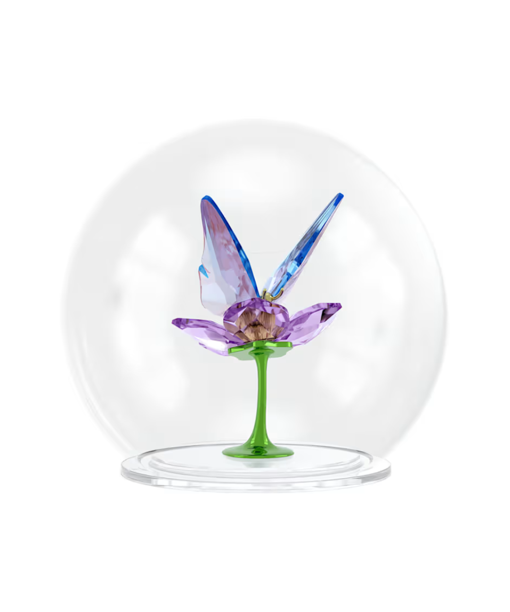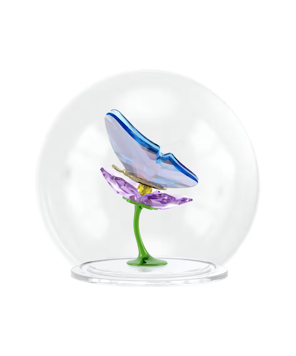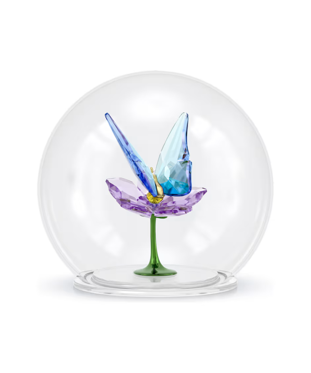 Swarovski captures this butterfly in mid-flight, bringing lightness and motion to a tranquil glass ball creation. Crafted with 165 facets, the design includes vivid blue wings with the Shimmer effect, a bright purple flower, and glossy metal accents, all working in harmony to produce an enchanting piece for new collectors and dreamers alike. Decoration object. Not a toy. Not suitable for children under 15.