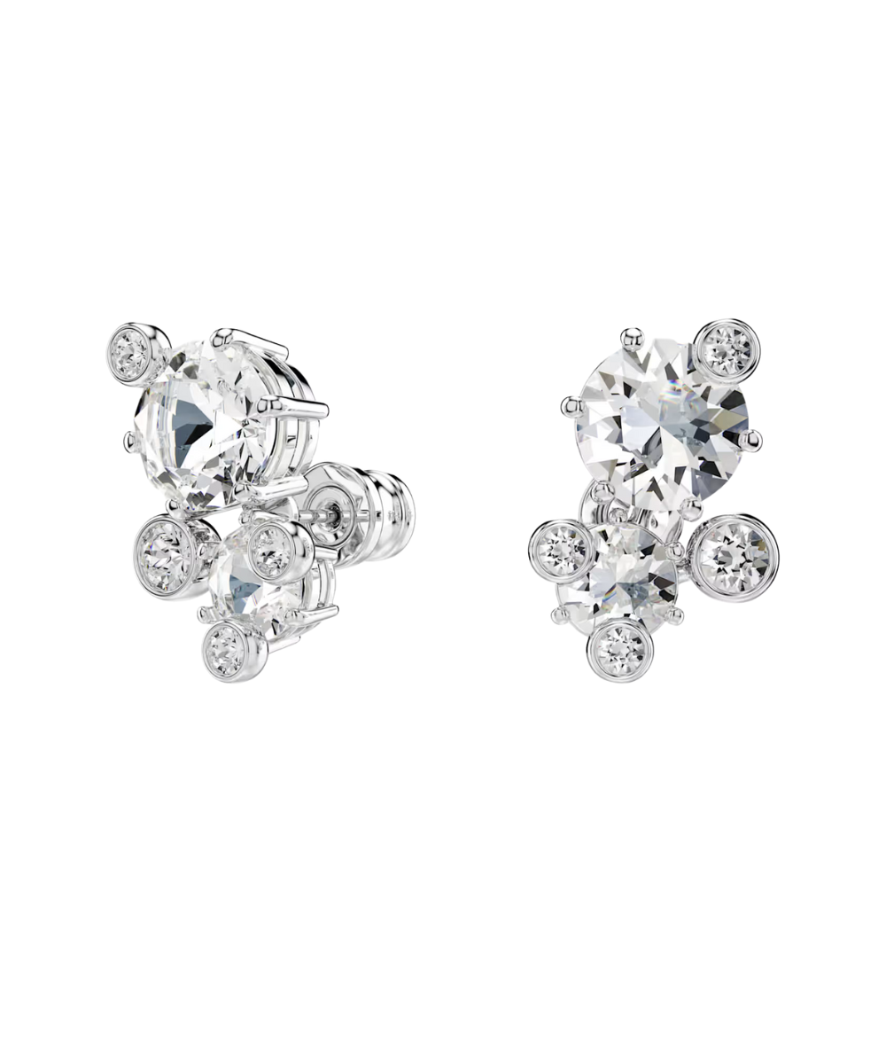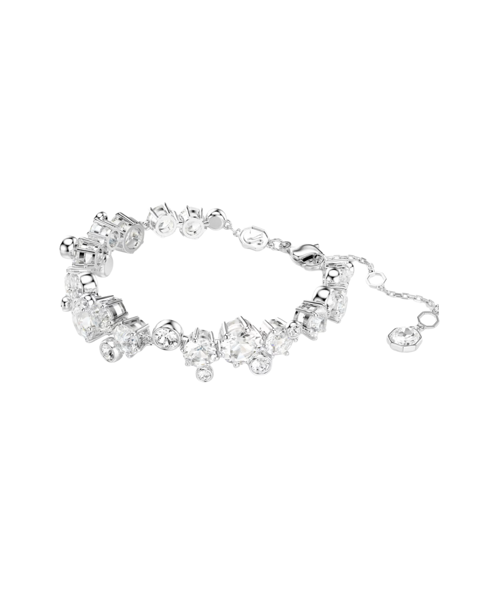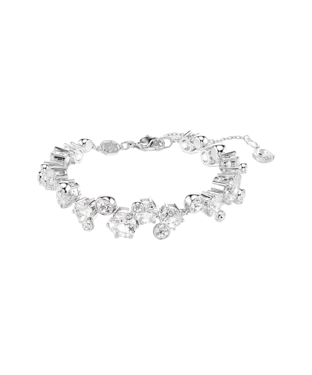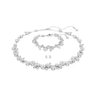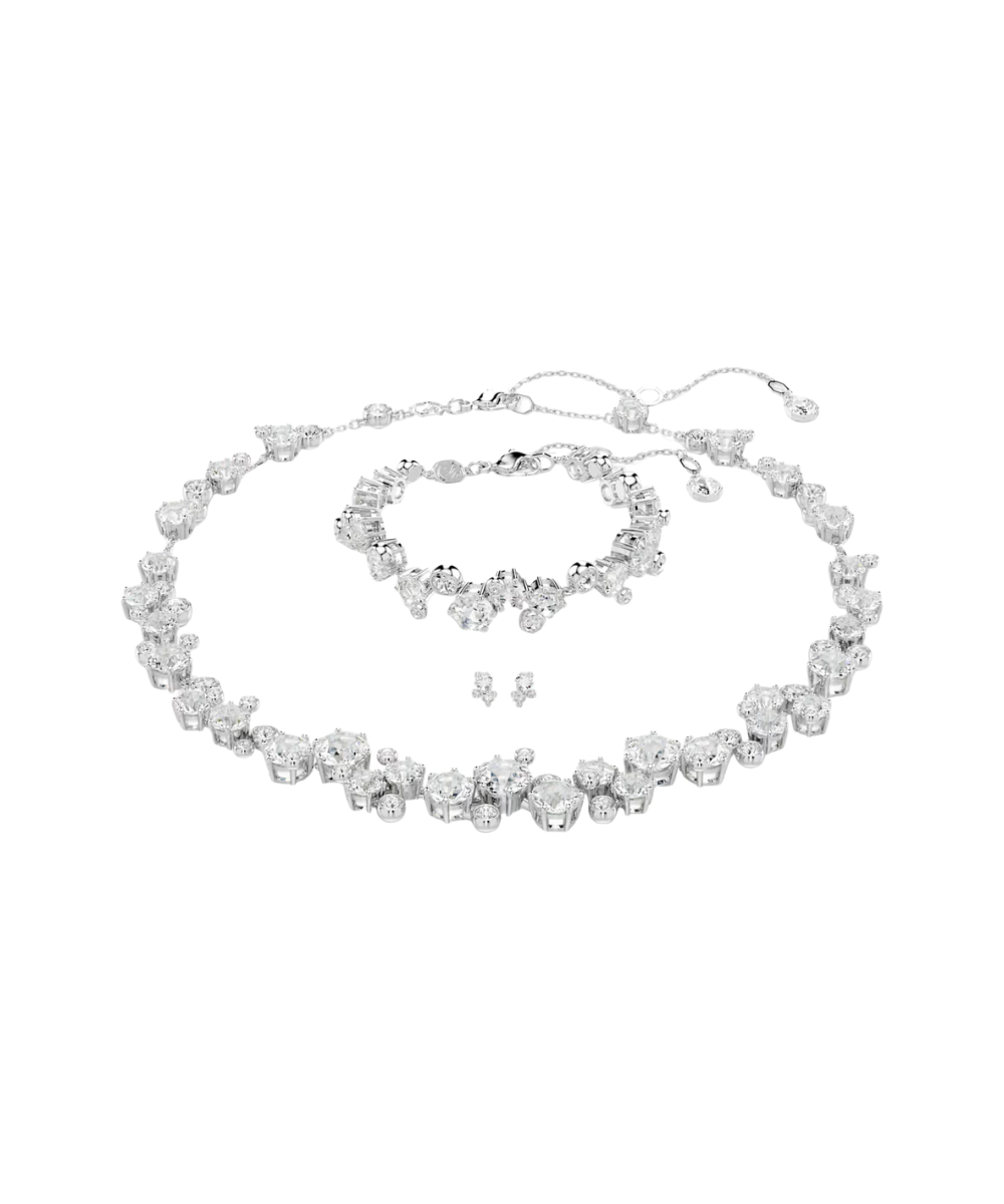 Let your style shine brighter with the matching necklace, bracelet, and studs in this starry Constella set. Each of the three rhodium plated pieces showcases clear crystals in various sizes, displayed in a prong or bezel setting. The necklace and bracelet also include octagonal stations for an easy size adjustment. It’s a cluster of light that adds pure radiance to any look.