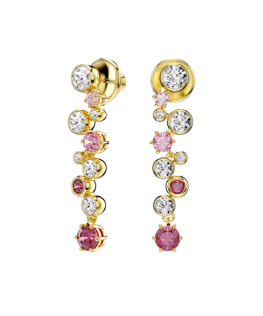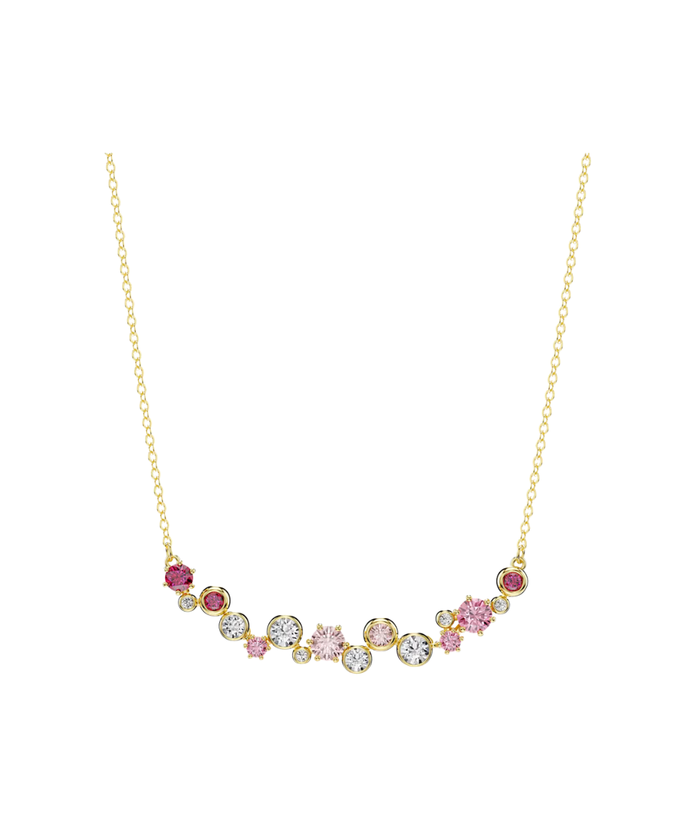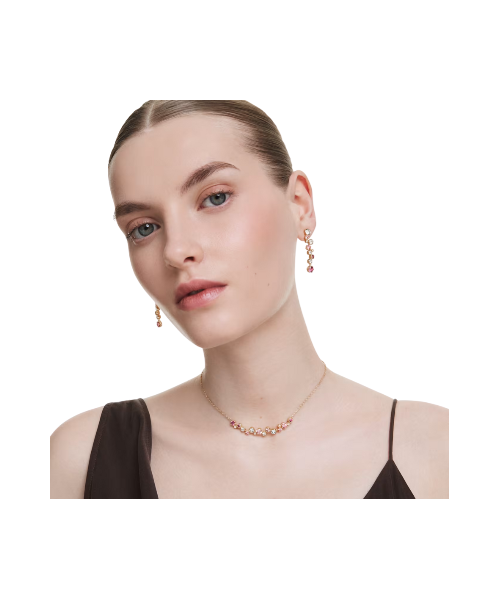 This gold-tone plated Constella set is crafted with joyful color in mind. Combining a necklace and pair of earrings, each piece is adorned with clear crystals and pink and red Swarovski Zirconia in various sizes and shades, presented in a prong or bezel setting. The necklace also include a sliding adjustment for a versatile fit. It's a warm and vivid set to amplify any outfit.