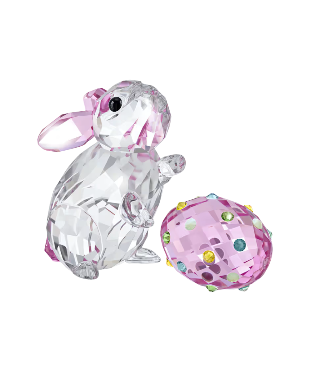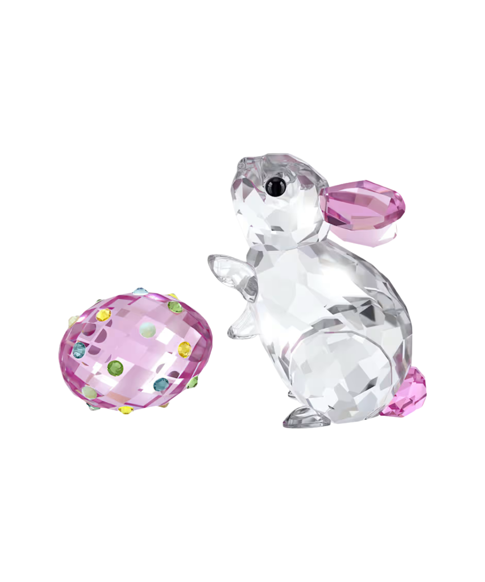 Combining two iconic symbols of springtime and Easter, this rabbit and egg display is crafted with 1,001 facets and features a variety of signature Swarovski shades. Multicolored flatbacks are used to decorate the pink egg, while the charming rabbit is accented with jet black eyes and a fluffy pink tail. A wonderful nature-inspired scene to bring your decor to life.