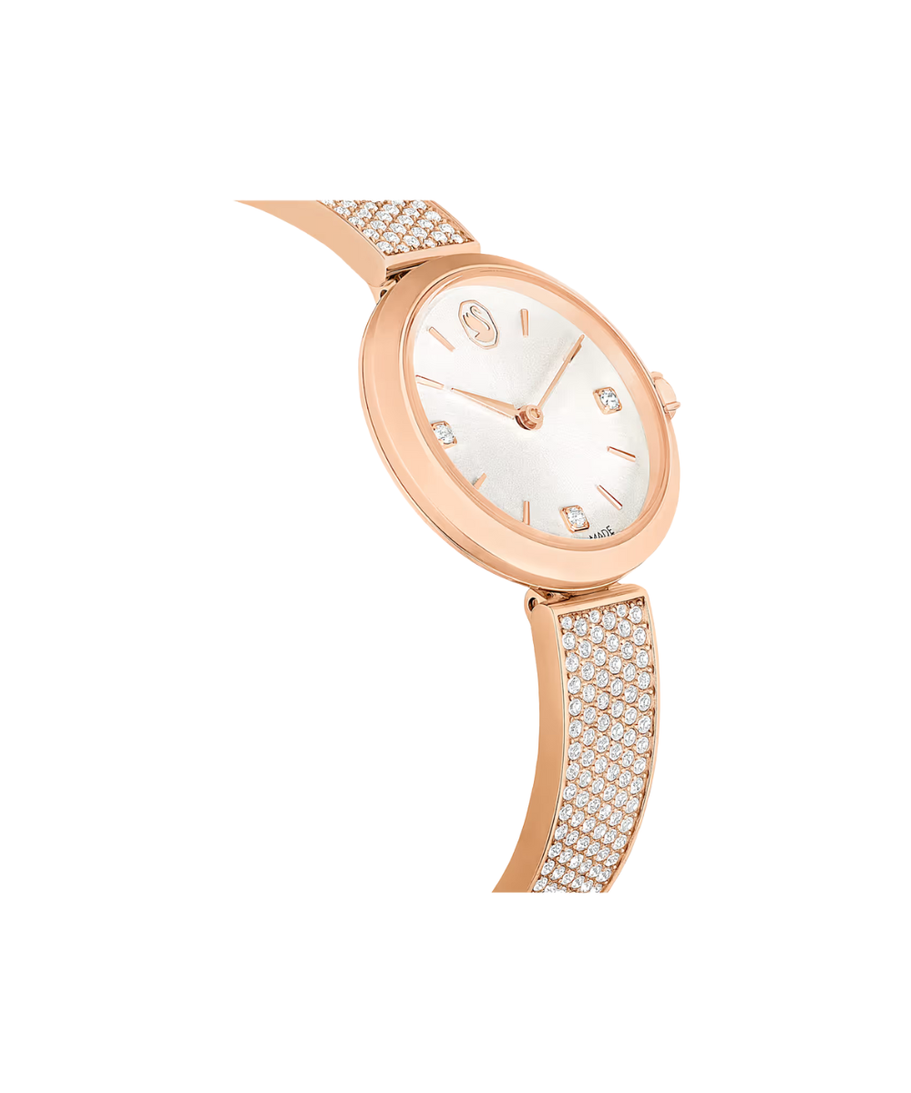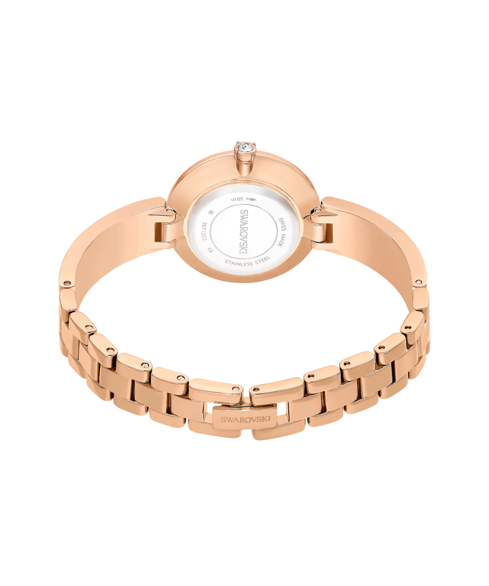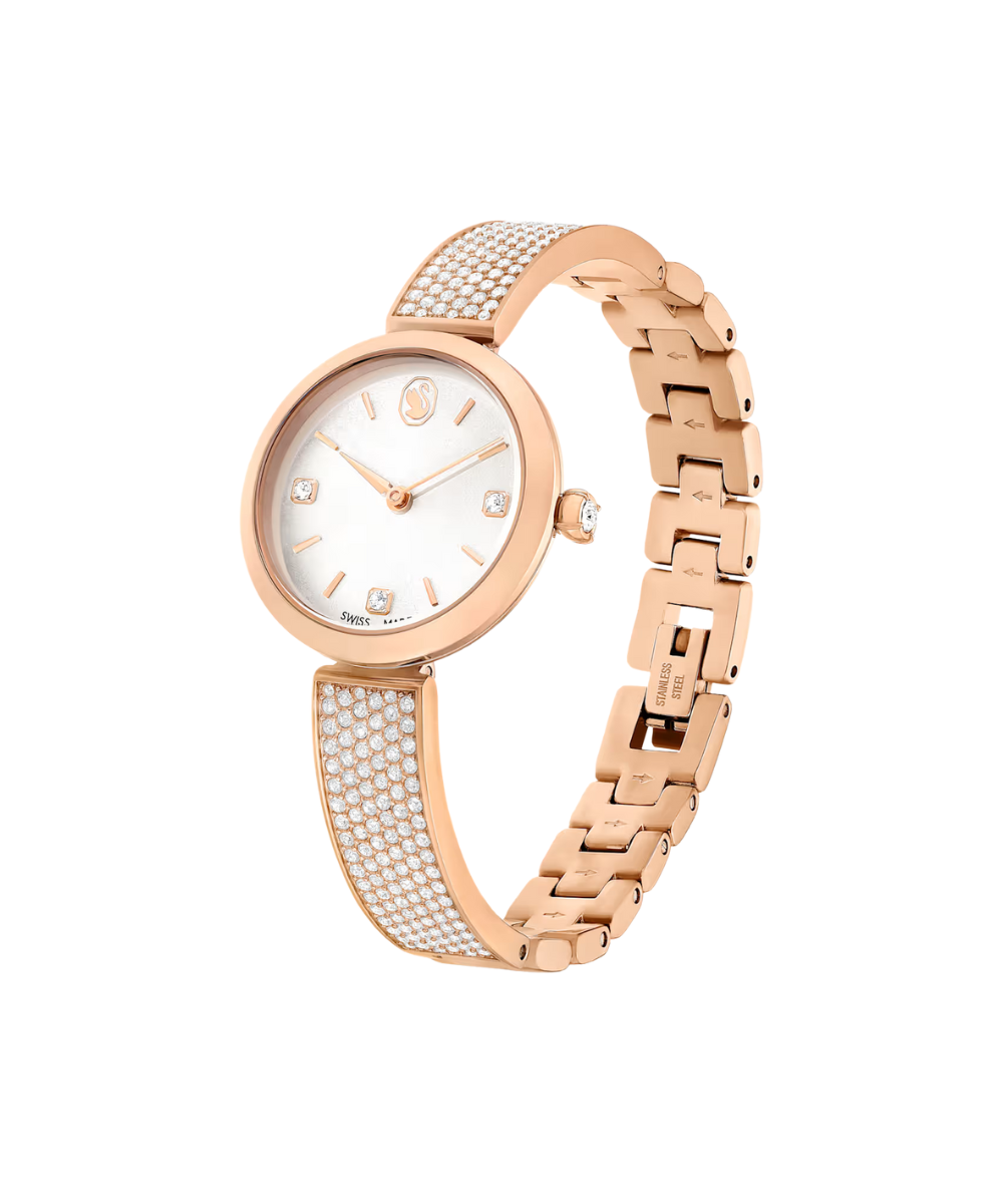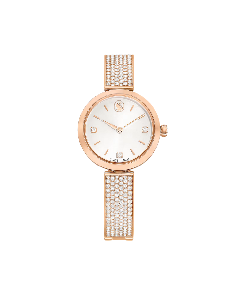 Illumina watches are crafted for sensational beauty around the wrist. This 27mm model features a rose gold-tone finish and an adjustable bracelet that is neatly adorned with 210 clear crystals. Beneath the mineral glass, the sunray dial has a swan logo at 12 o’clock as well as three square crystals for index markers. Along with a single crystal placed in the crown, this Swiss made watch is water resistant to 50m and is designed to keep you on time with light-catching radiance at all hours of the day or night.