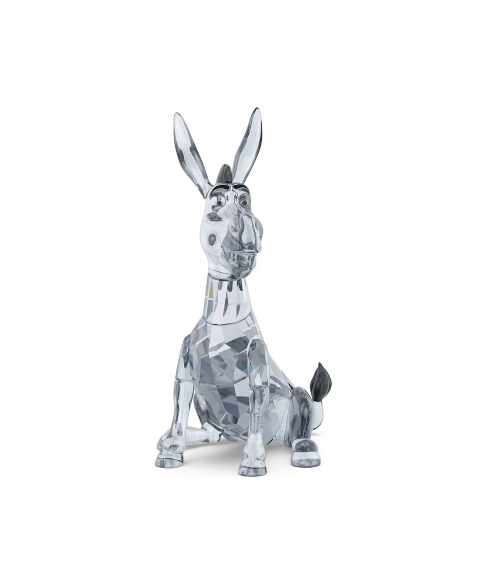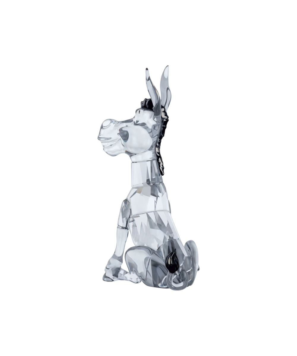 Embark on a whimsical journey to the kingdom of Far Far Away, as Swarovski pays tribute to the iconic film from DreamWorks Animation, Shrek. The collectible series includes this Donkey figurine, which captures the fast-talking yet loyal character in signature detail. Crafted with 264 facets, the design shows Donkey in a delightful sitting pose, with the Shadow Crystal effect to match his on-screen color. Give your own interior a touch of the swamp, or gift this figurine to a Shrek fan who loves adventure and imagination. Decoration object. Not a toy. Not suitable for children under 15.