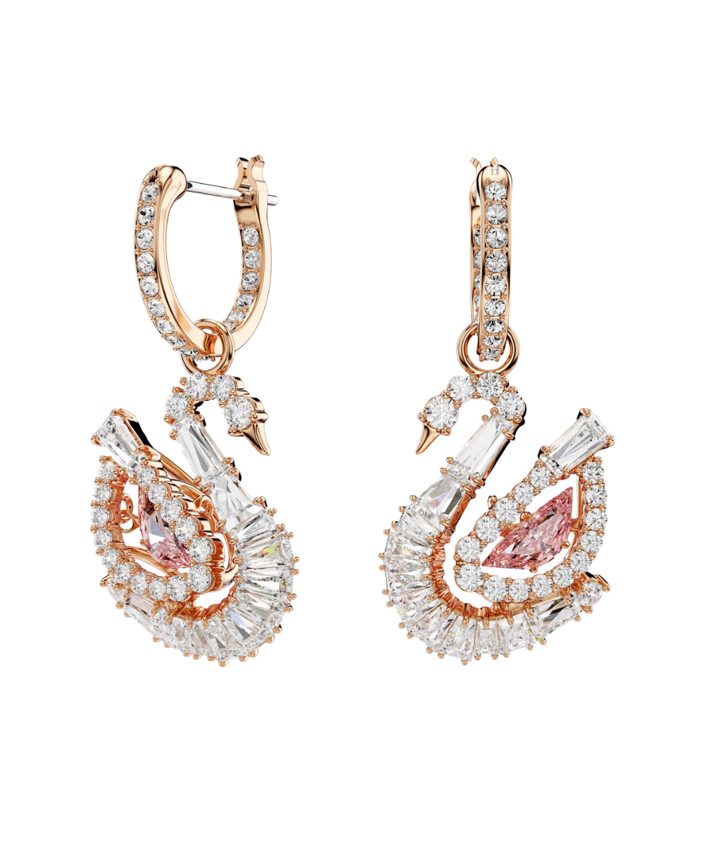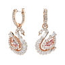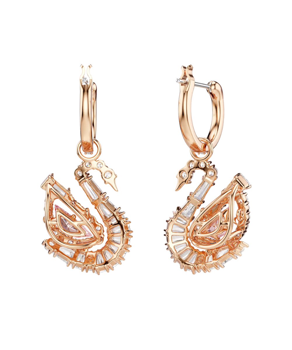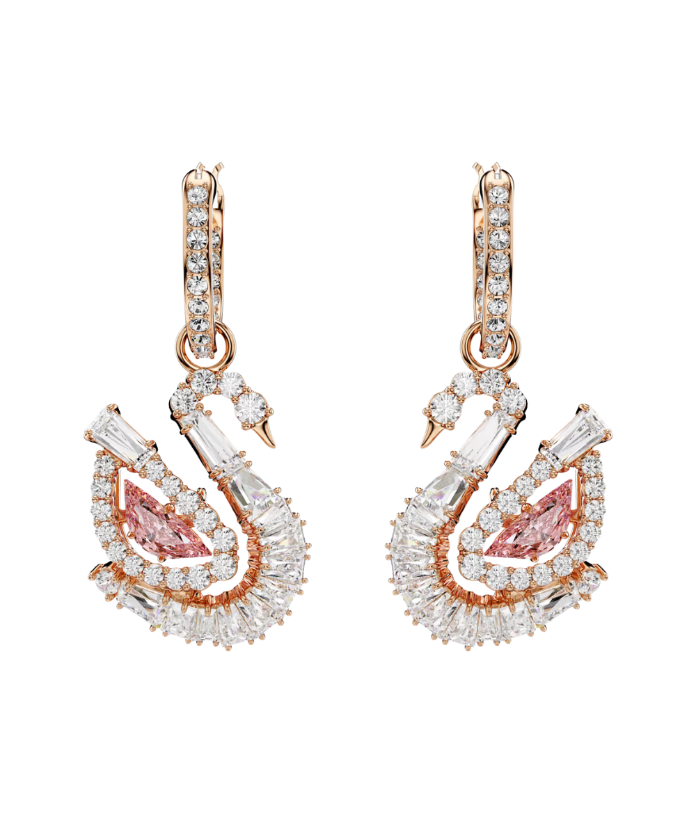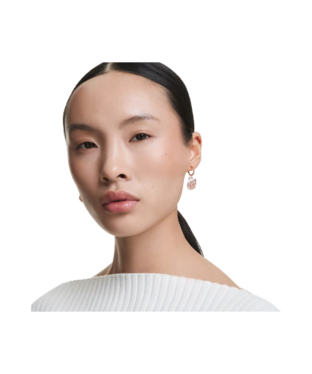 Embrace the delicate movement of Swarovski’s iconic swan with these emblematic earrings. Attached to a mini hoop with shimmering pavé, each graceful silhouette is rose gold-tone plated and adorned in clear Swarovski Zirconia with a pink dancing stone in a swan body cut. This radiant detail creates an endless motion of color and light, and will keep your style shining at every moment.