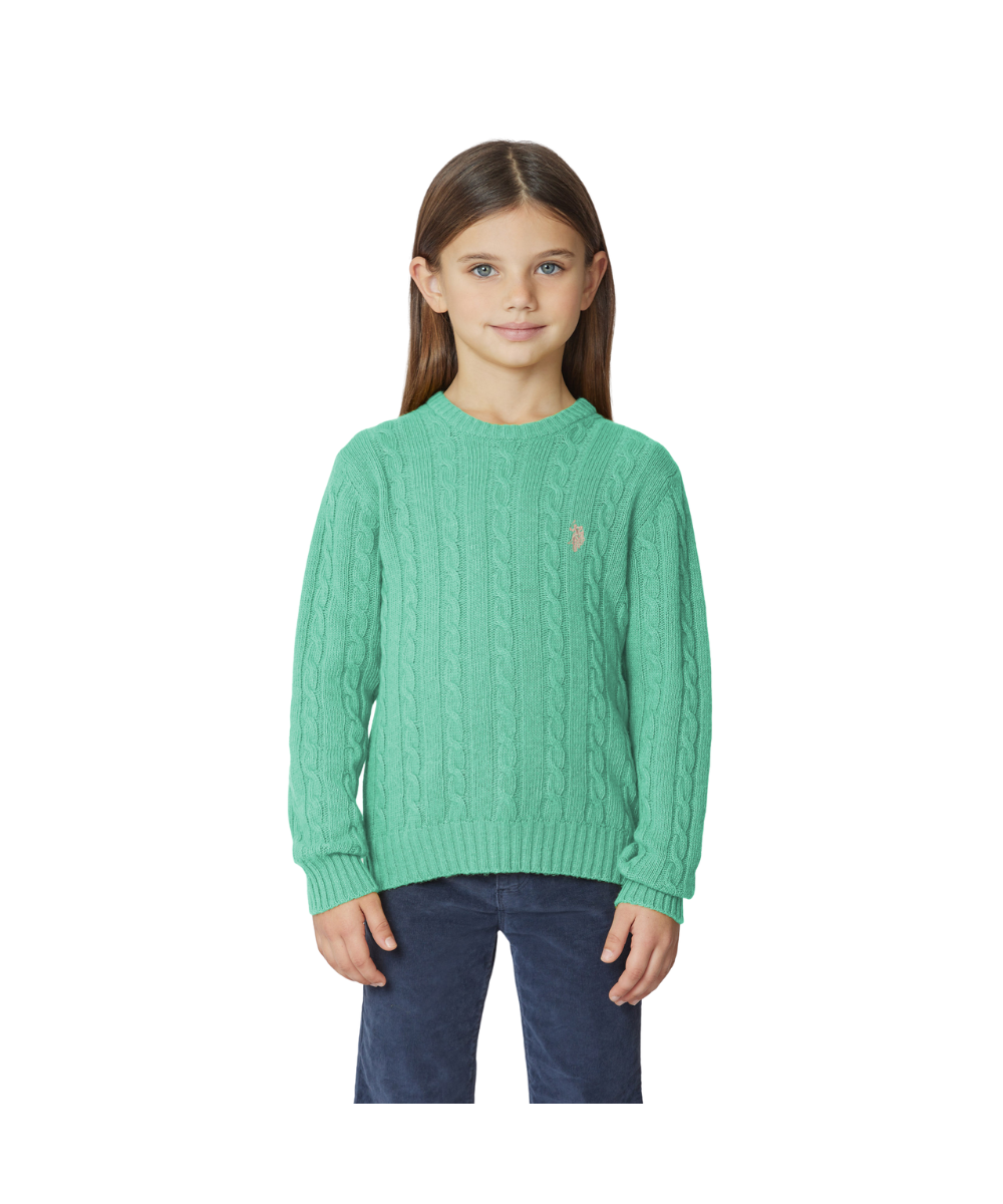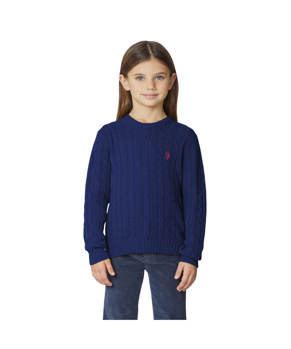Elevate your little one's wardrobe with the US POLO ASSN Girls Mila Sweater. Crafted with a refined cable knit design, this sweater offers timeless texture and warmth, blending comfort with elegant style. Perfect for layering or wearing on its own, it adds a sophisticated touch to any outfit while ensuring cozy wear throughout cooler days.