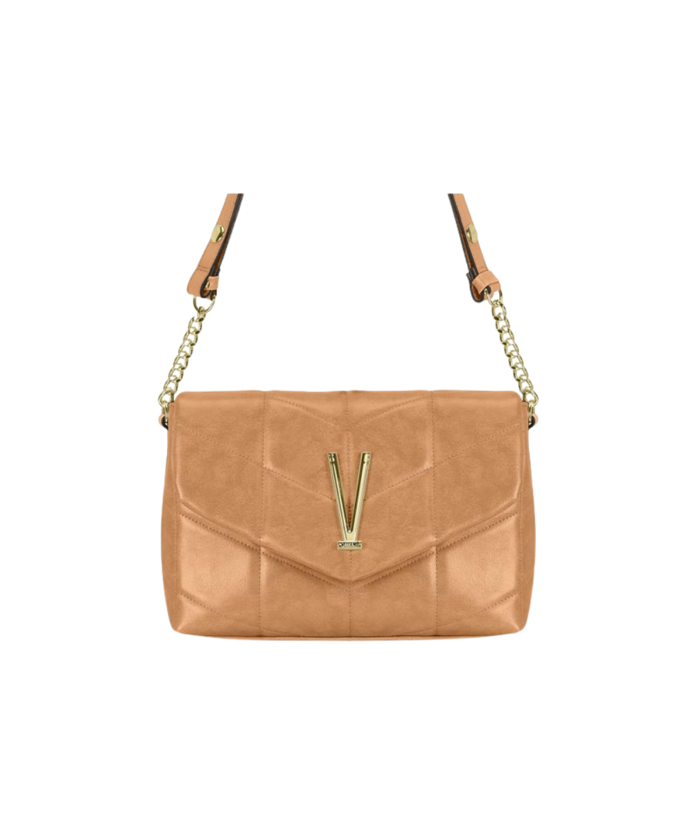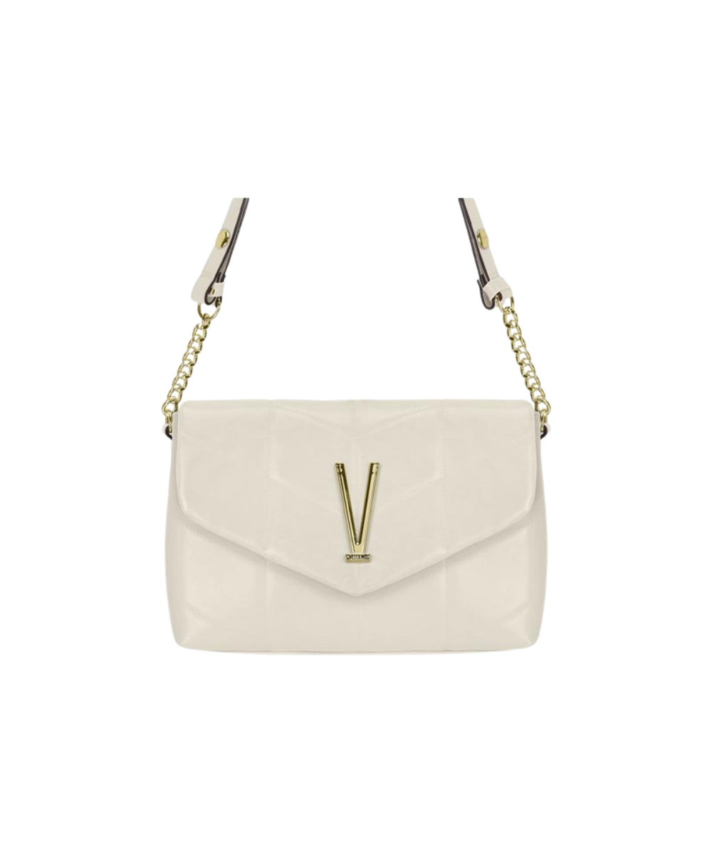 A bold yet timeless statement piece designed to elevate any look. This structured flap shoulder bag features a modern quilted pattern and a striking gold-tone V logo for a refined finish. The polished chain strap with leather insert adds both elegance and comfort, allowing versatile wear from day to evening. Compact yet practical, it offers enough space for your daily essentials while maintaining a sleek silhouette. Perfect for styling with dresses, tailored outfits or elevated casual looks.