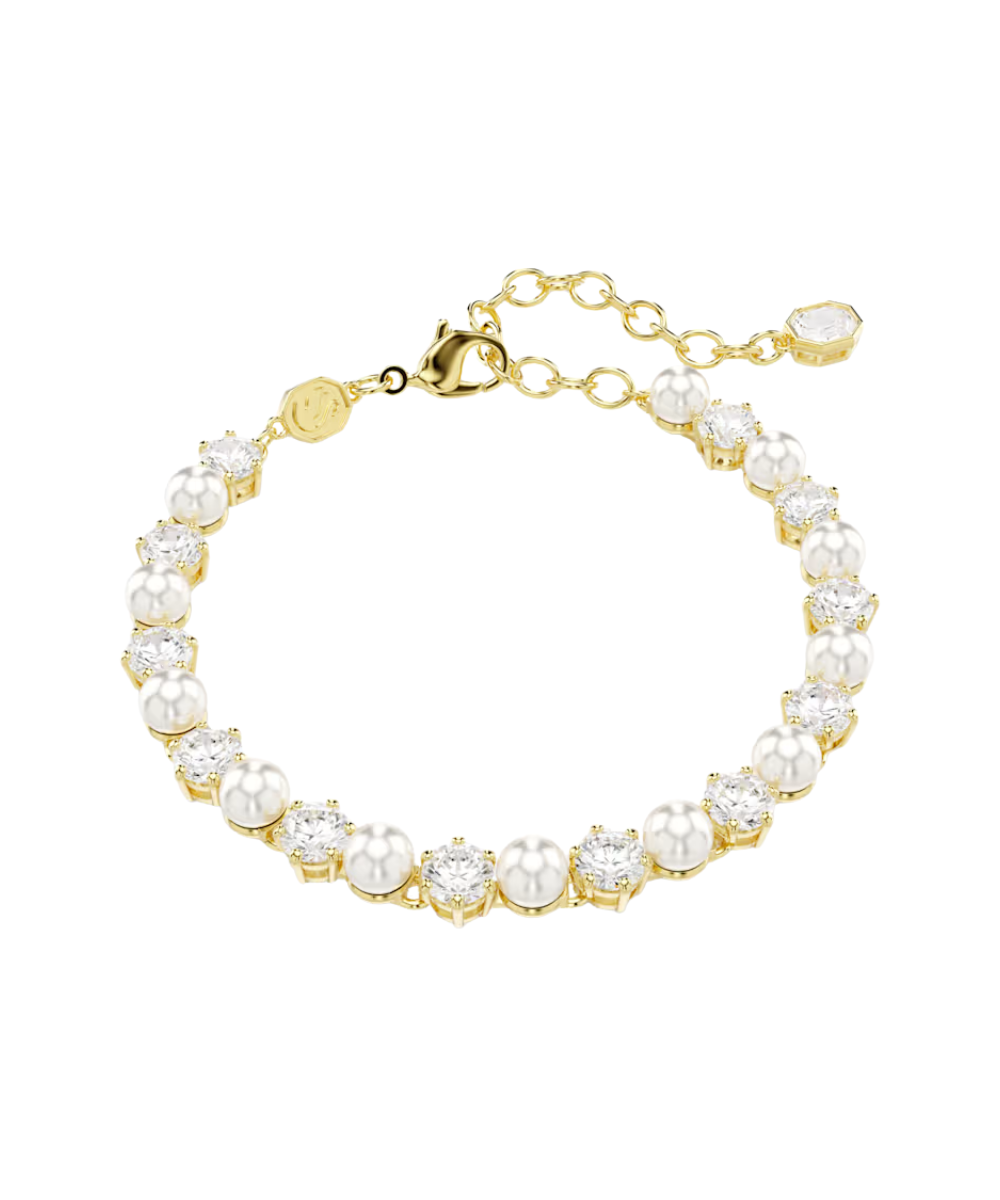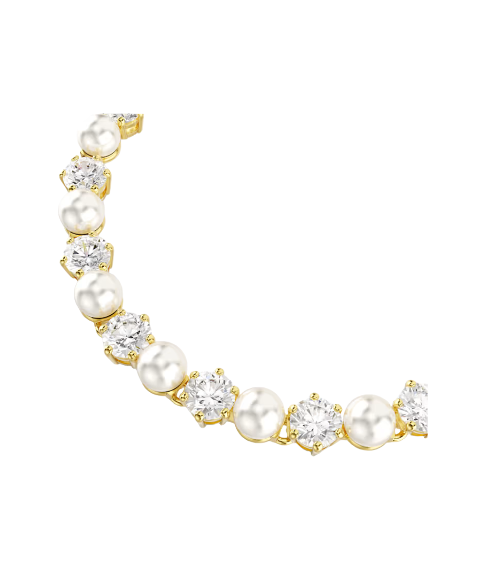 This stunning piece of jewelry transforms the classic Swarovski tennis bracelet with new levels of refinement. The gold-tone plated design is crafted with a full surround of alternating Swarovski Zirconia and Swarovski Crystal Pearls, providing a modern twist of pure sophistication. It’s an everyday essential that can be easily combined with the matching Matrix necklace.