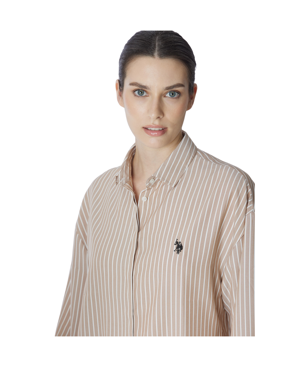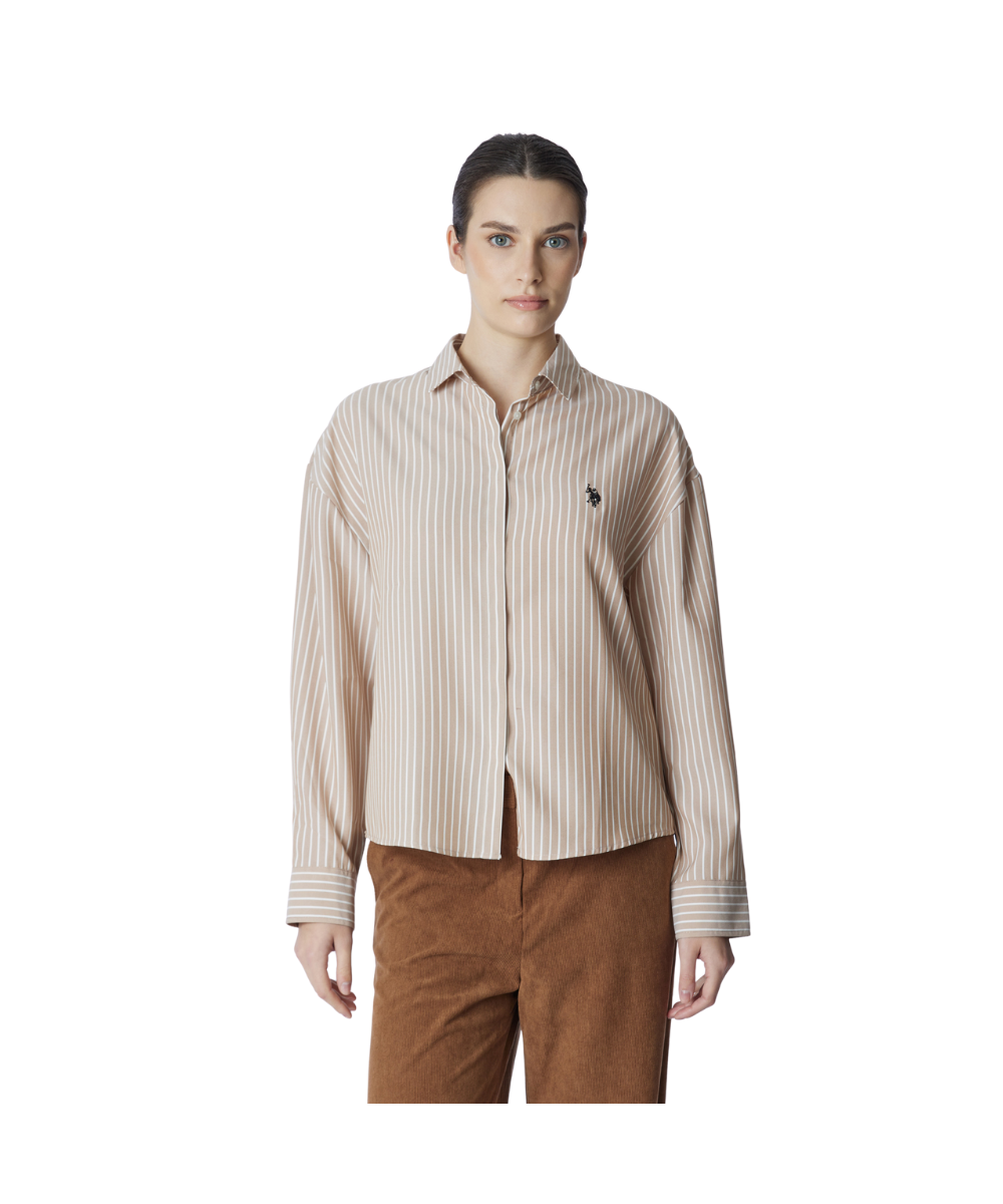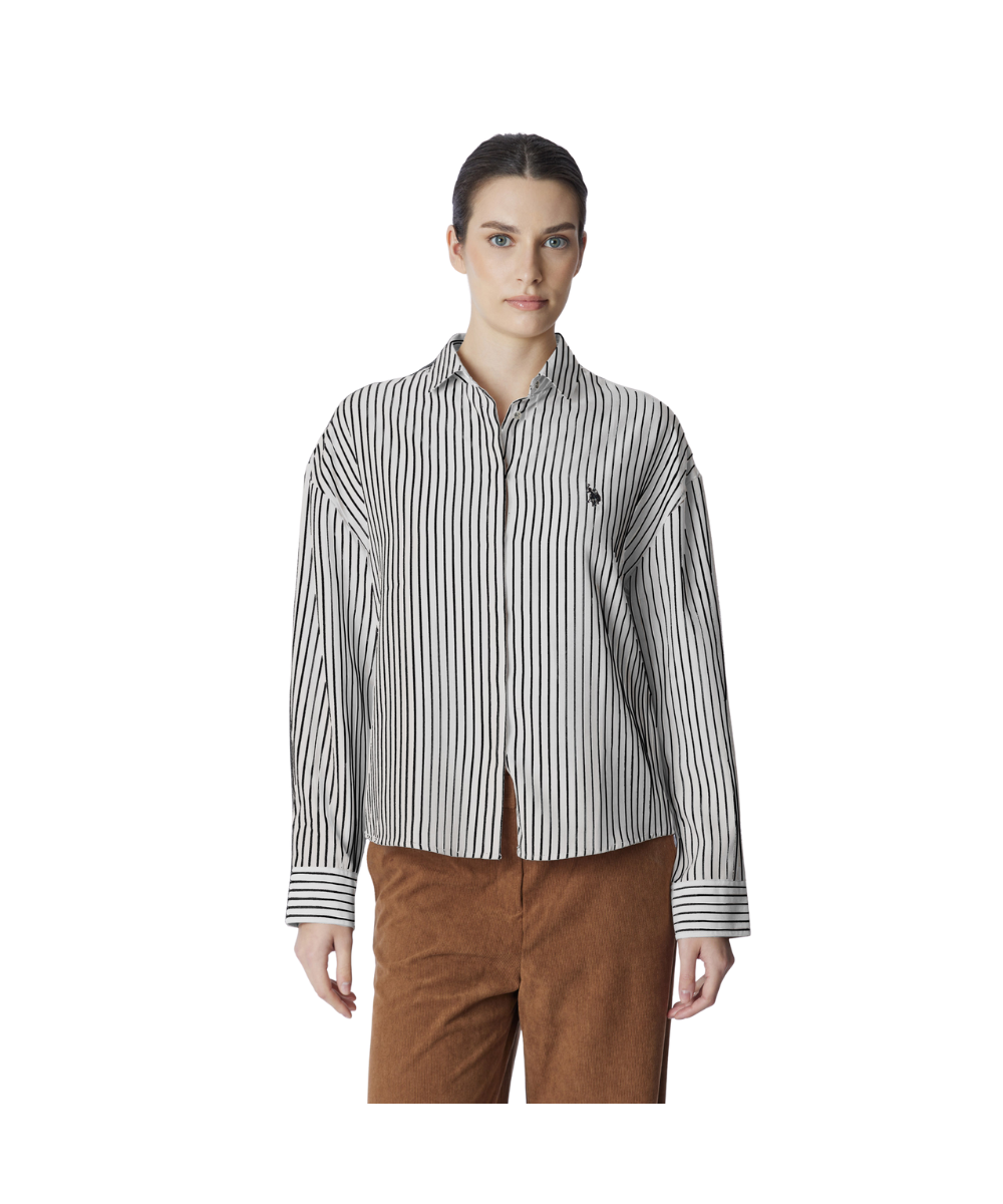 Elevate your casual wardrobe with this refined US Polo Assn women's Yoki shirt, featuring timeless striped detailing that effortlessly transitions from day to evening. The classic stripe pattern adds visual interest while maintaining an understated elegance, perfect for layering or wearing solo. Crafted with attention to detail, this versatile piece pairs seamlessly with denim, tailored trousers, or skirts for a polished, put-together look. An essential staple for the discerning woman who values both style and substance.