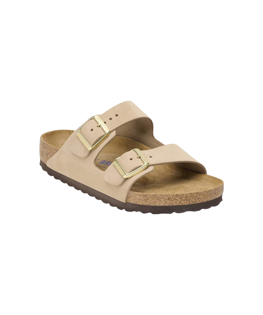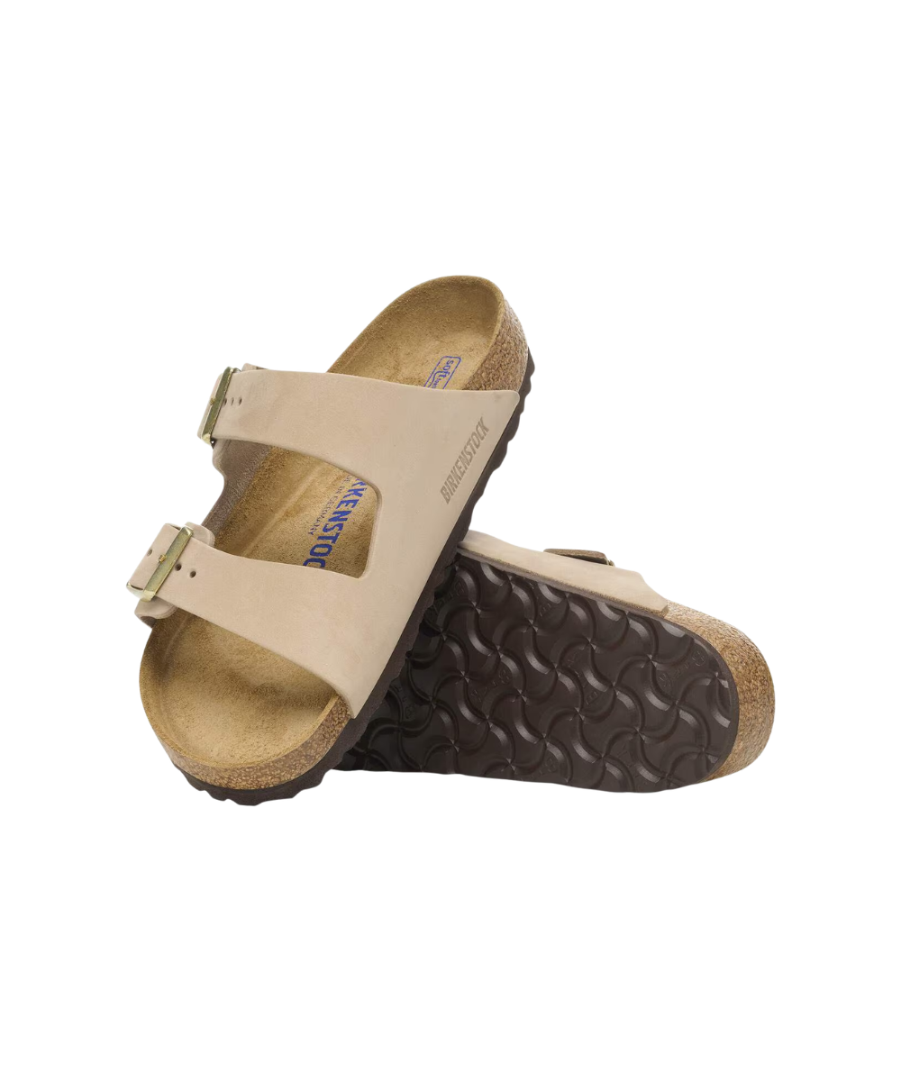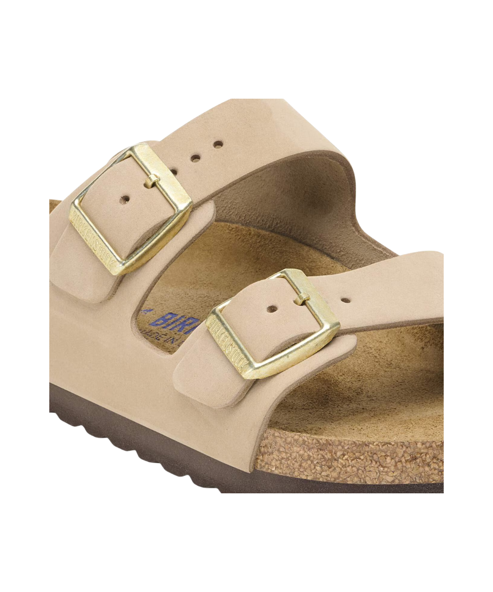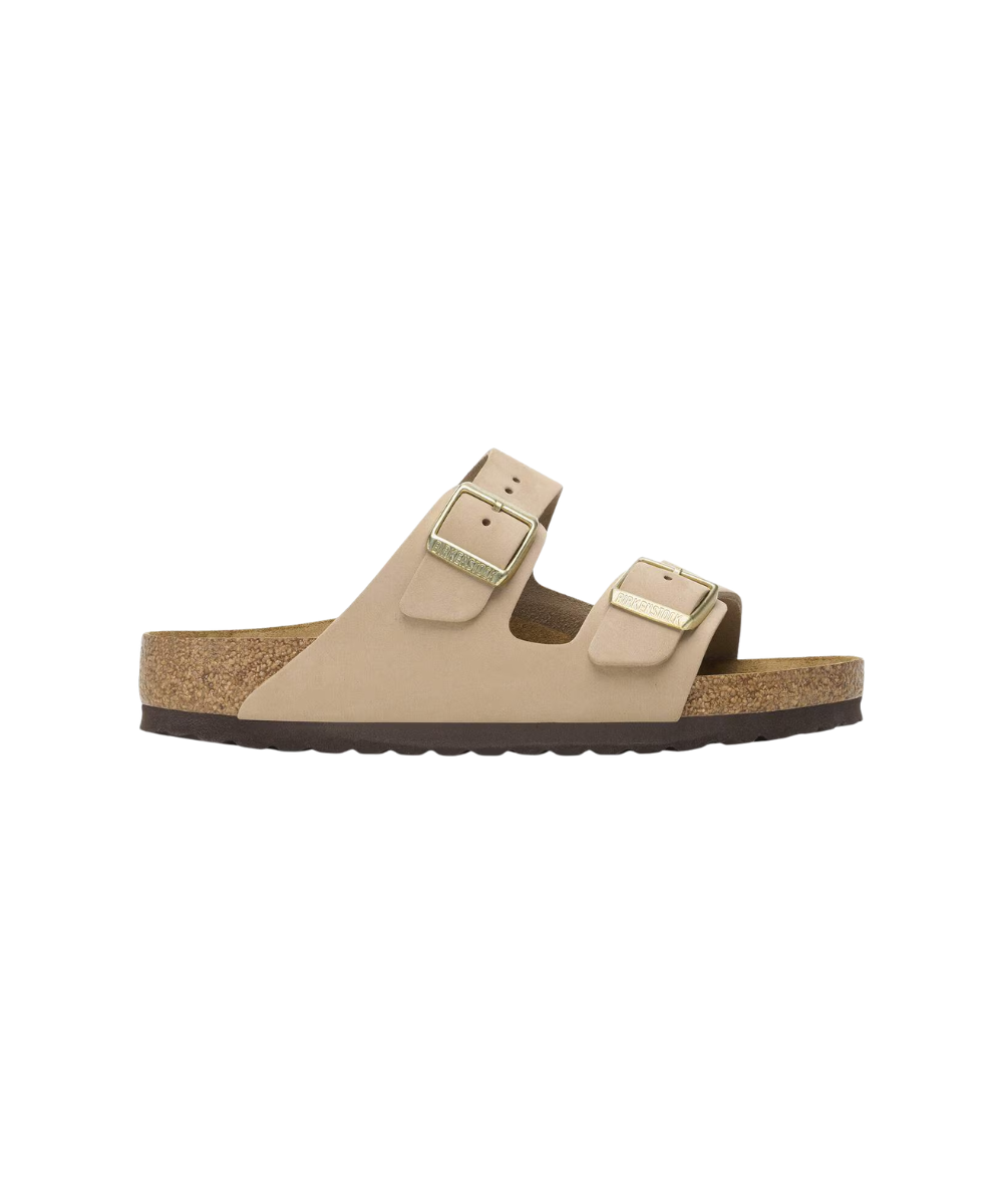 The BIRKENSTOCK Arizona is a genuine classic. This individually adjustable unisex two-strap sandal is now available in a uniquely sophisticated nubuck leather version. The leather features an open selvedge finish, emphasizing the handcrafted and natural look of these stylish sandals. The soft and comfortable footbed provides extra comfort.