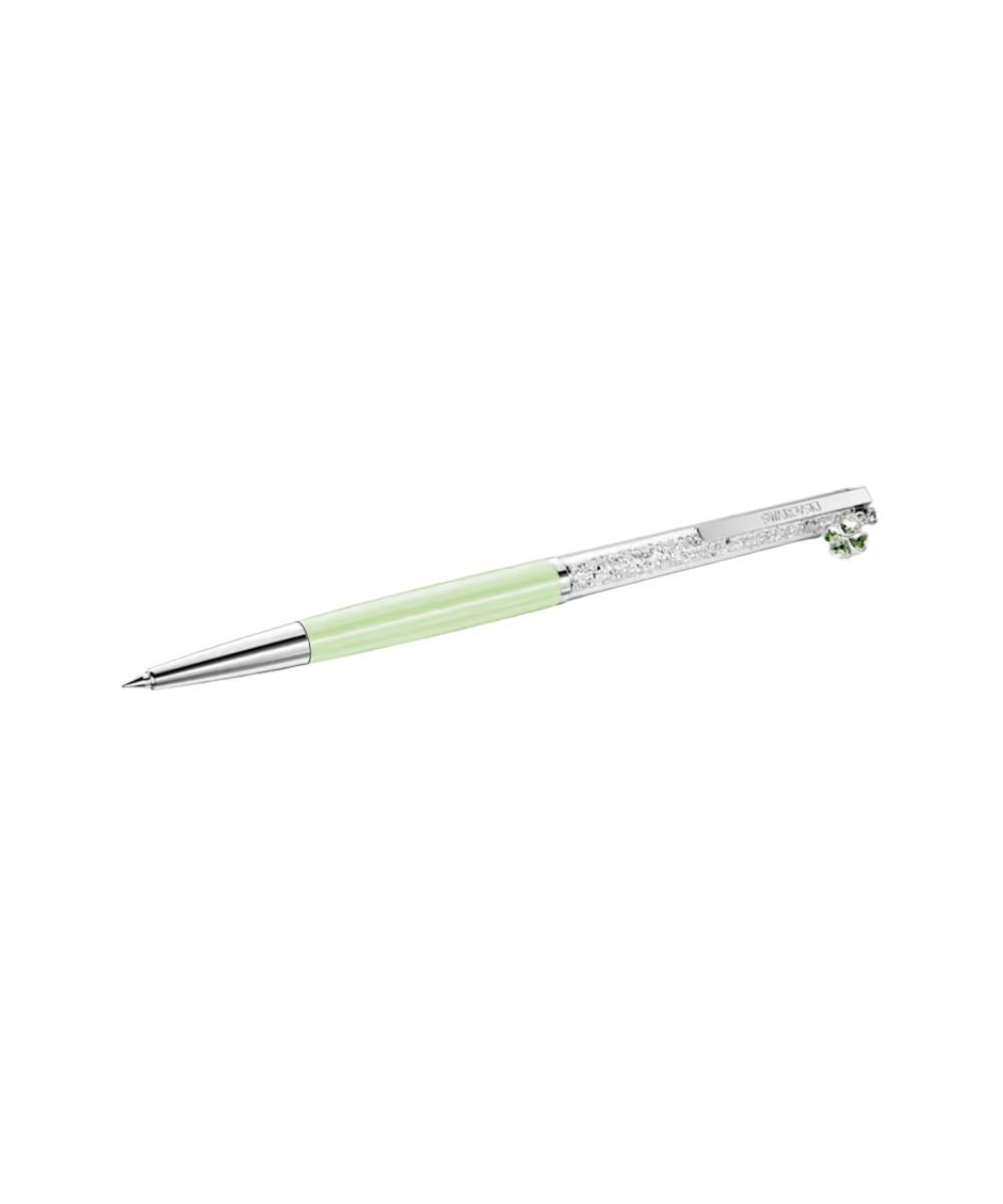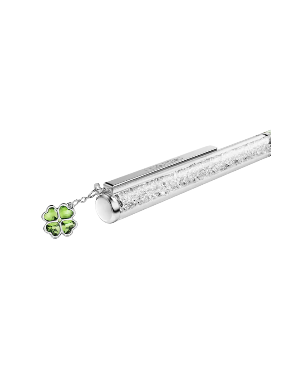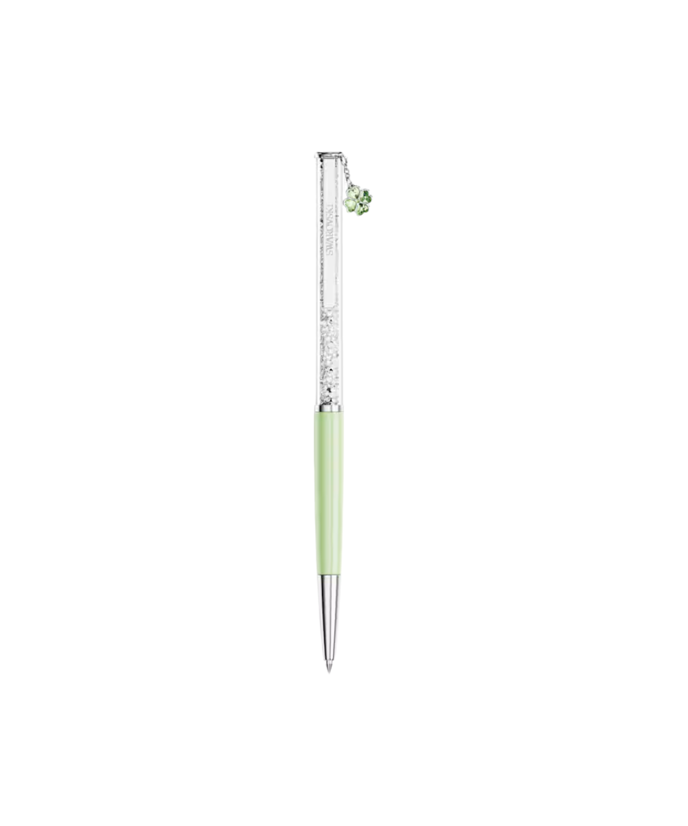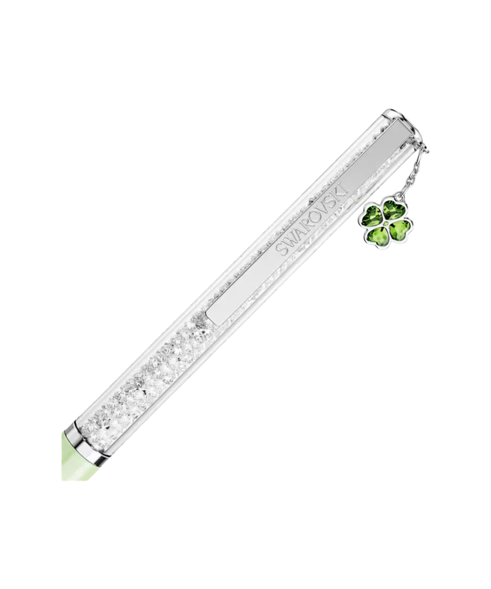 This slender ballpoint pen offers a timeless accessory for endless creativity. The slimline design is filled with around 400 clear crystals, which are visible through the long transparent window. Along with a lacquered green barrel, the pen includes chrome plated finishing, as well as a lucky clover charm, symbolizing hope, faith, love, and luck. Gift to yourself or someone you know who has a poetic way with words. Refills of black and blue inks are available to purchase in Swarovski stores.