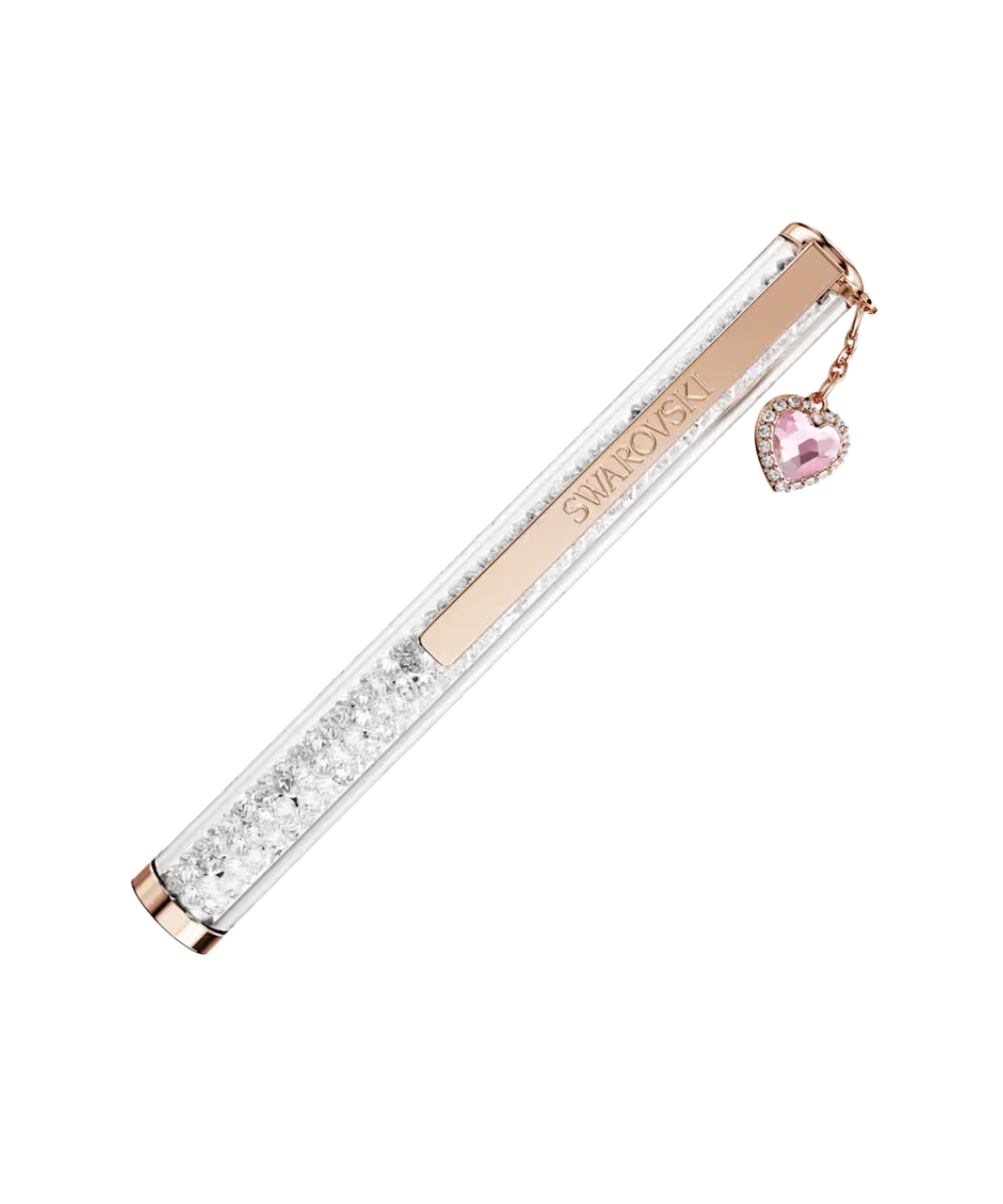 This slender ballpoint pen offers a timeless accessory for endless creativity. The slimline design is filled with around 400 clear crystals, which are visible through the long transparent window. Along with a lacquered pink barrel, the pen includes rose gold-tone plating, as well as a pink love heart charm - symbolizing affection, intention, and a personal touch behind every word written. Gift to yourself or someone you adore. Refills of black and blue inks are available to purchase in Swarovski stores.