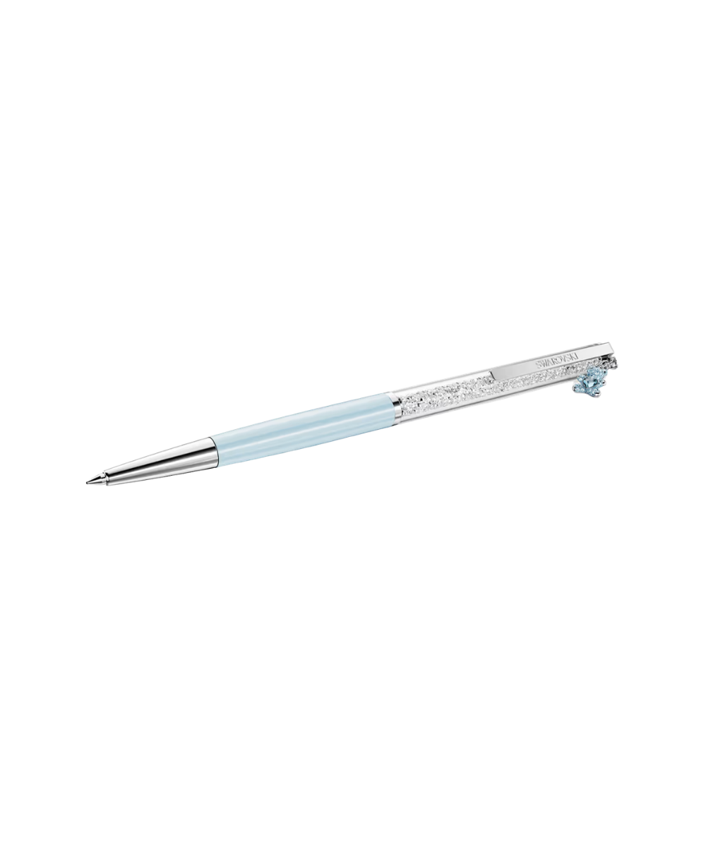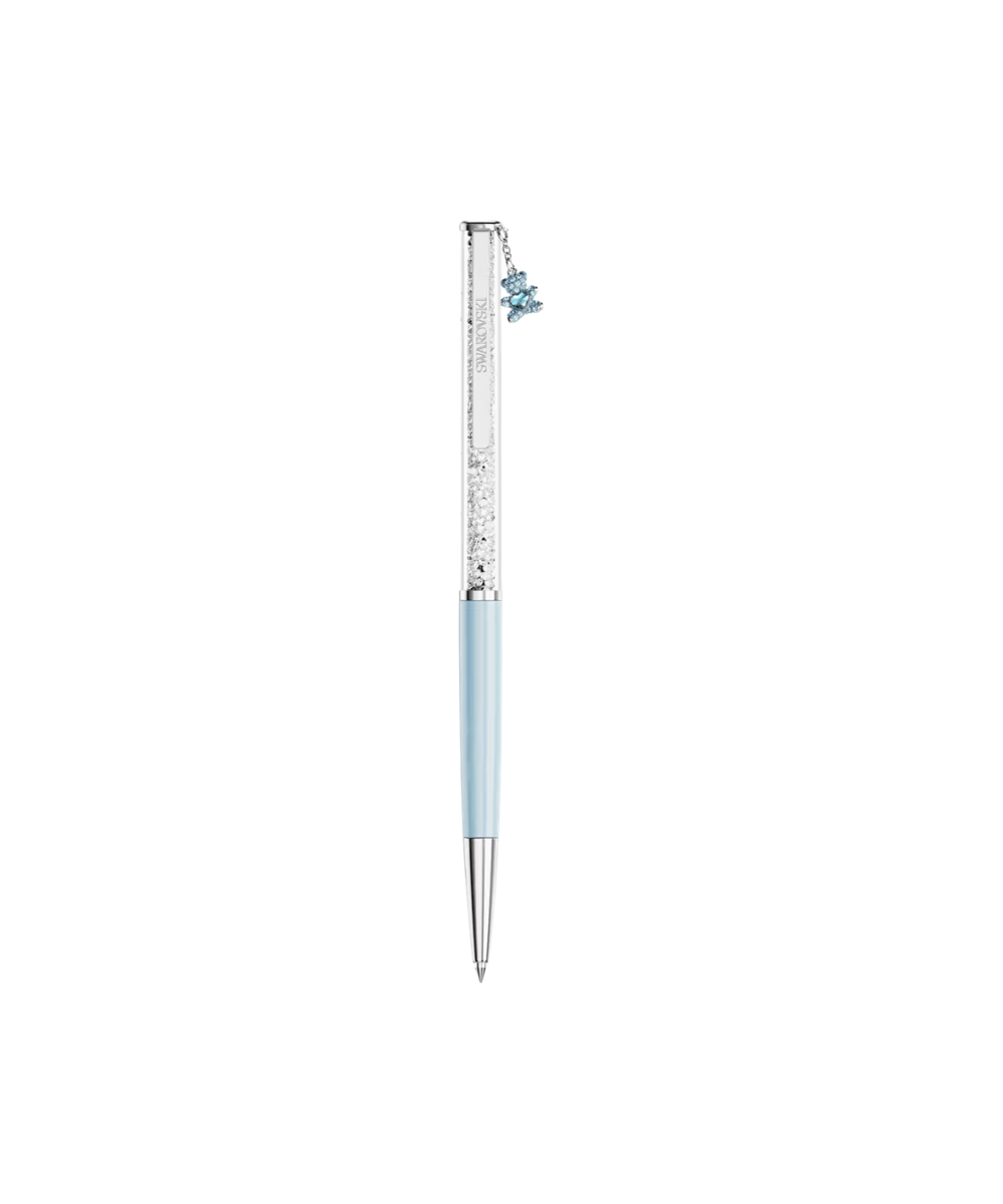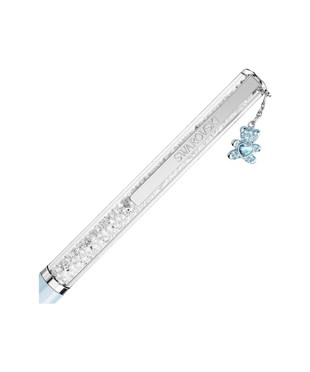 This slender ballpoint pen offers a timeless accessory for endless creativity. The slimline design is filled with around 400 clear crystals, which are visible through the long transparent window. Along with a lacquered light blue barrel, the pen includes chrome plated finishing, as well as a teddy charm in a blue colour that evokes trust and enduring love. Gift to yourself or someone you know who has a poetic way with words. Refills of black and blue inks are available to purchase in Swarovski stores.