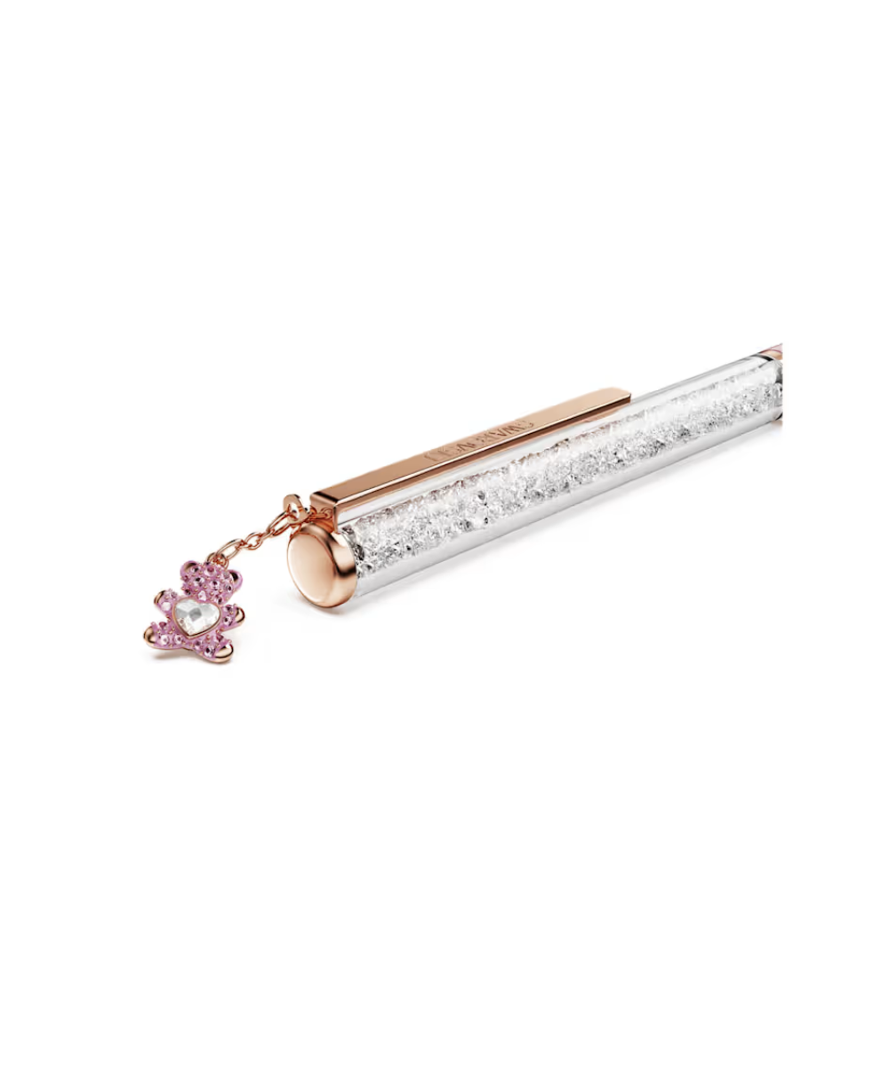 This slimline ballpoint pen is filled with around 400 clear crystals, which are visible through the long transparent window. Along with a lacquered pink barrel, the pen includes rose gold-tone finishing and a teddy bear charm, which gives a pocket-sized hug wherever it goes. Gift it to someone special who has a poetic way with words. Refills of black and blue inks are available to purchase in Swarovski stores.
