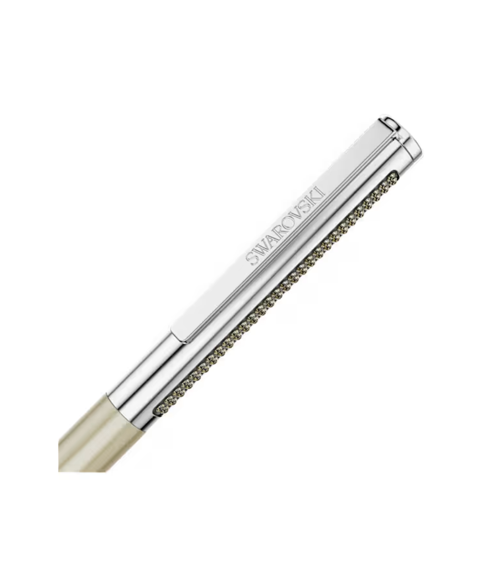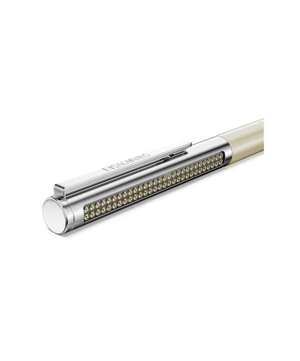 This refined ballpoint pen is inspired by the Matrix Tennis jewelry family and features a slender barrel with a soft metallic sheen in gold-tone finishing and an inlay of Crystaltex Chaton Bandings crystals in the Golden Shadow effect. Elegant and understated yet still emitting an unmistakable Swarovski shine. Refills of black and blue inks are available to purchase in Swarovski stores.