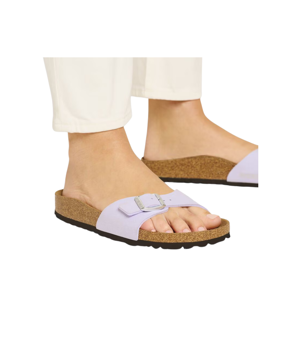 The BIRKENSTOCK Madrid is a genuine classic that delights the world of fashion with its minimalist design. This popular sandal has been given an update in a new material, with a vegan version now available. The upper is made from a skin-friendly, synthetic material with a velvety feel.