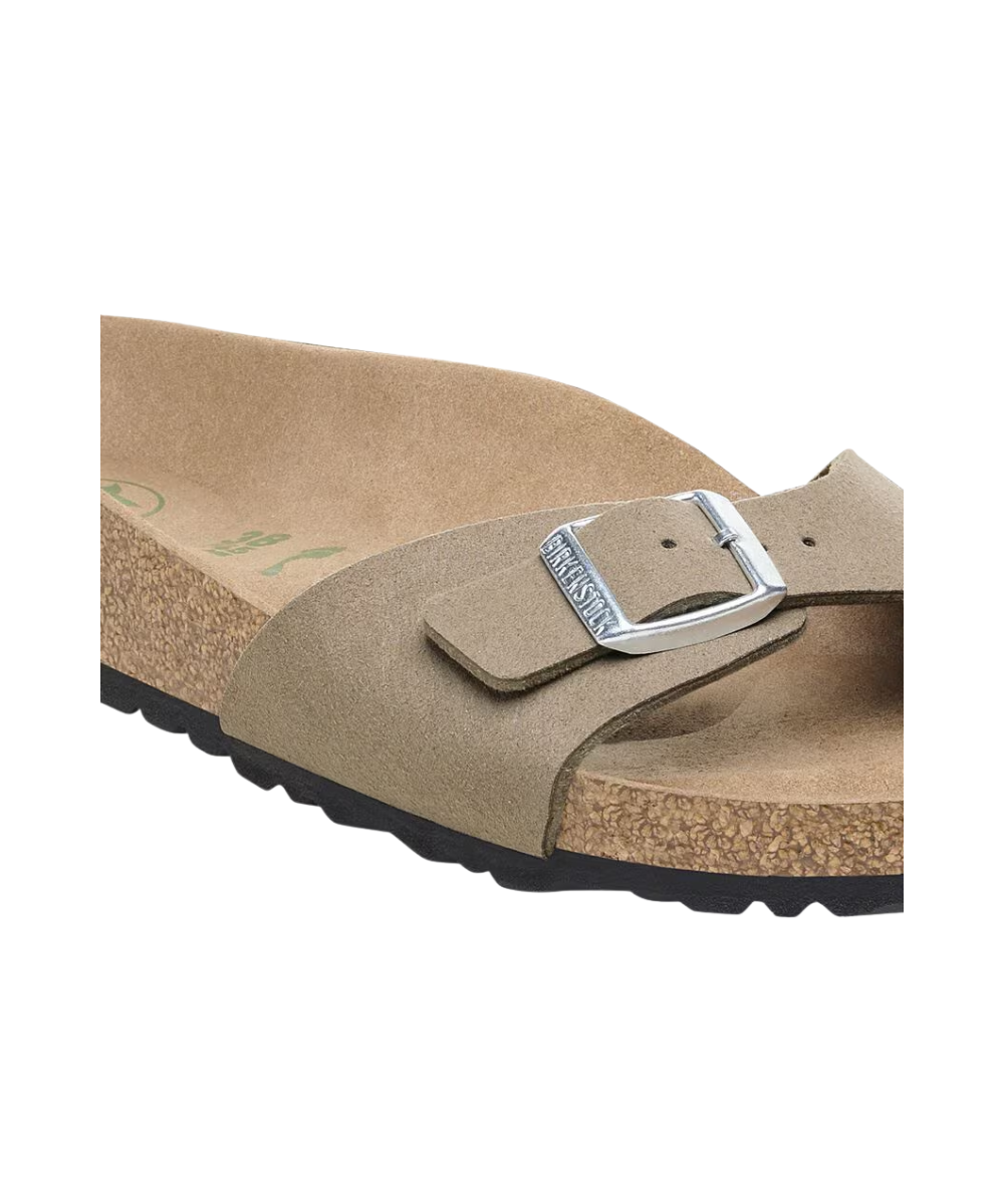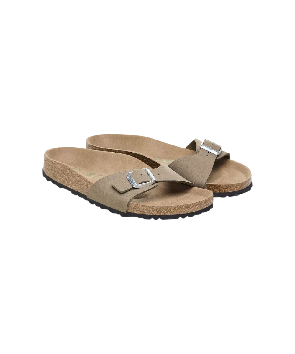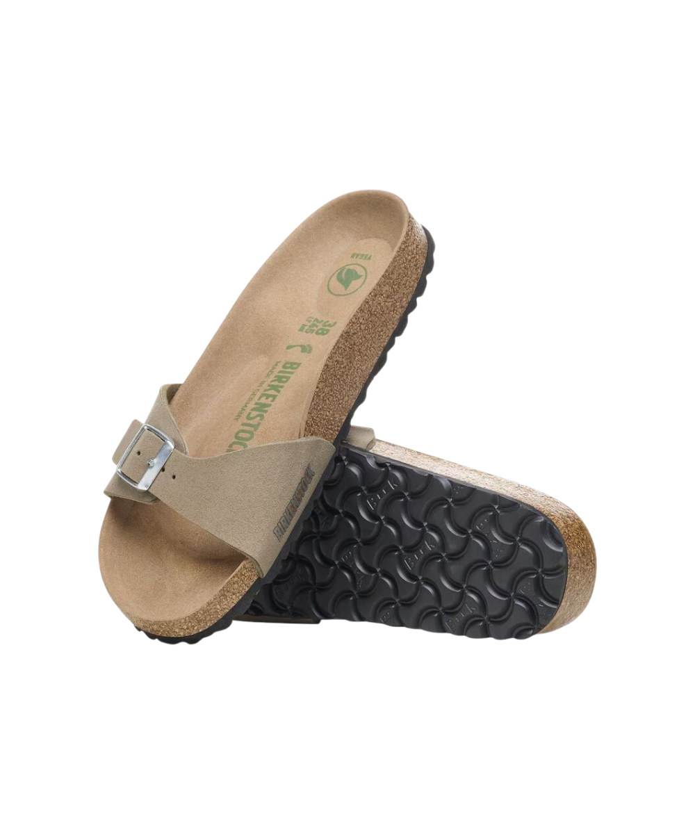 The BIRKENSTOCK Madrid is a genuine classic that delights the world of fashion with its minimalist design. This popular sandal has been given an update in a new material, with a vegan version now available. The upper is made from a skin-friendly, synthetic material with a velvety feel.