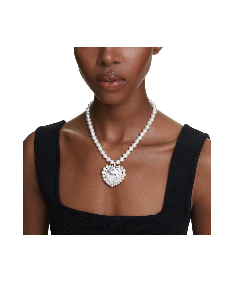 Infused with Swarovski’s finest savoir-faire, this ultra glamorous necklace celebrates luxury as well as light. The rhodium plated design uses Swarovski Crystal Pearls to maximum effect, placing them around the necklace itself, and also in different sizes around the central heart-shaped crystal. A beautifully crafted piece of jewelry for yourself, or a joyful gift of love for someone you adore.