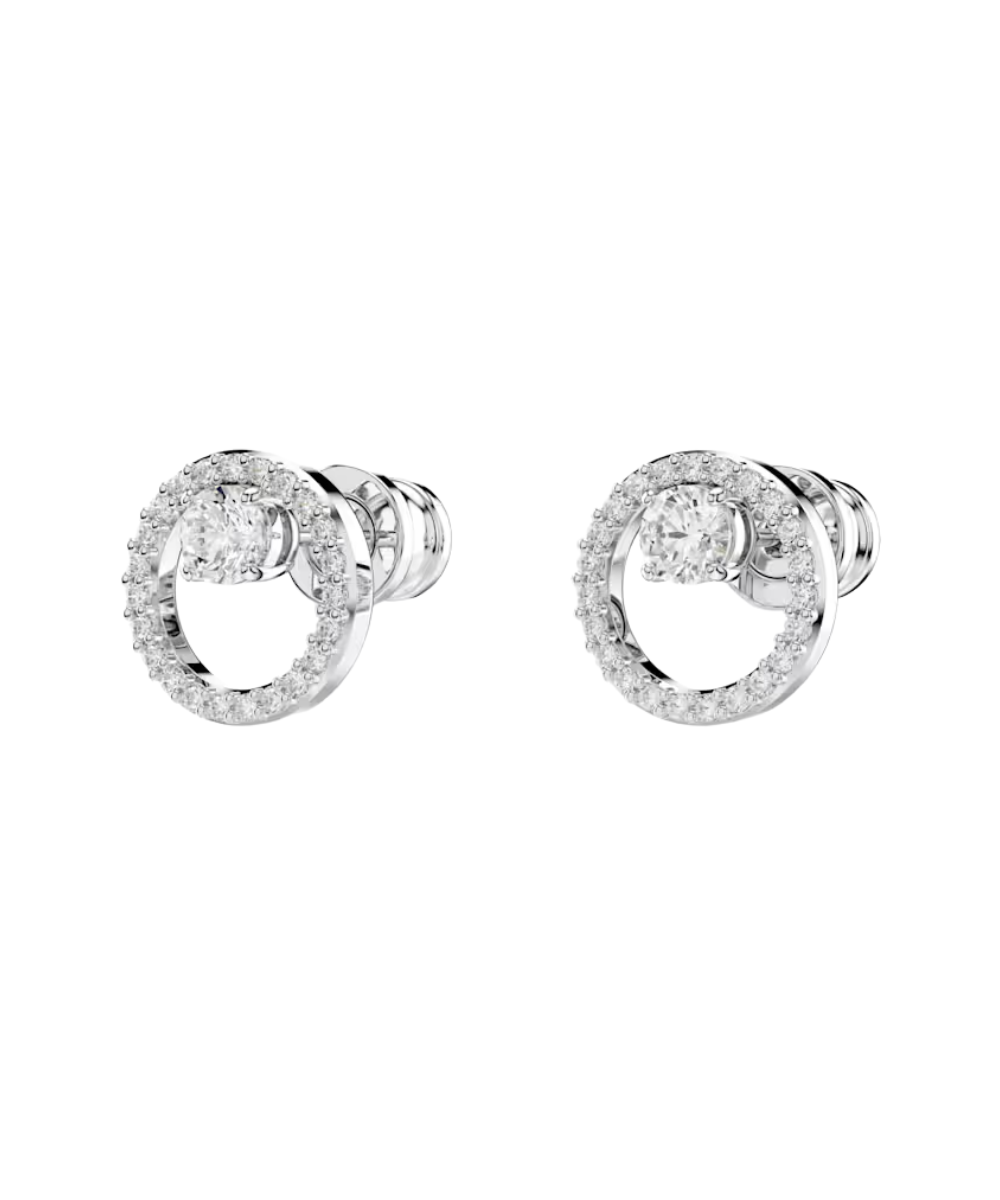 SWAROVSKI Constella stud earrings, Round cut, White, Rhodium plated
