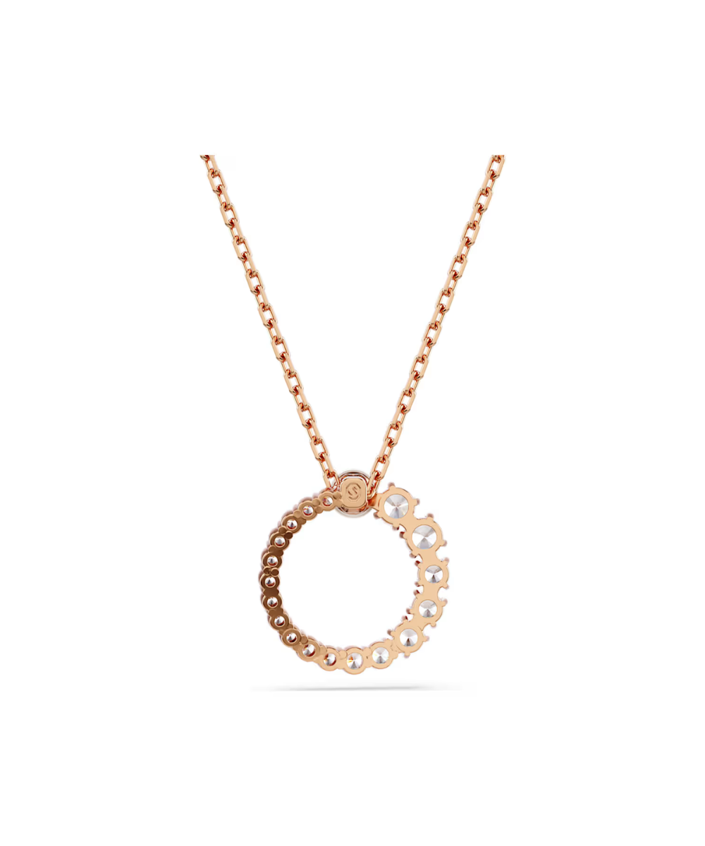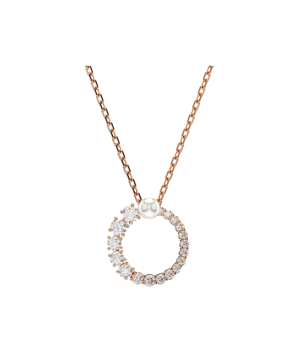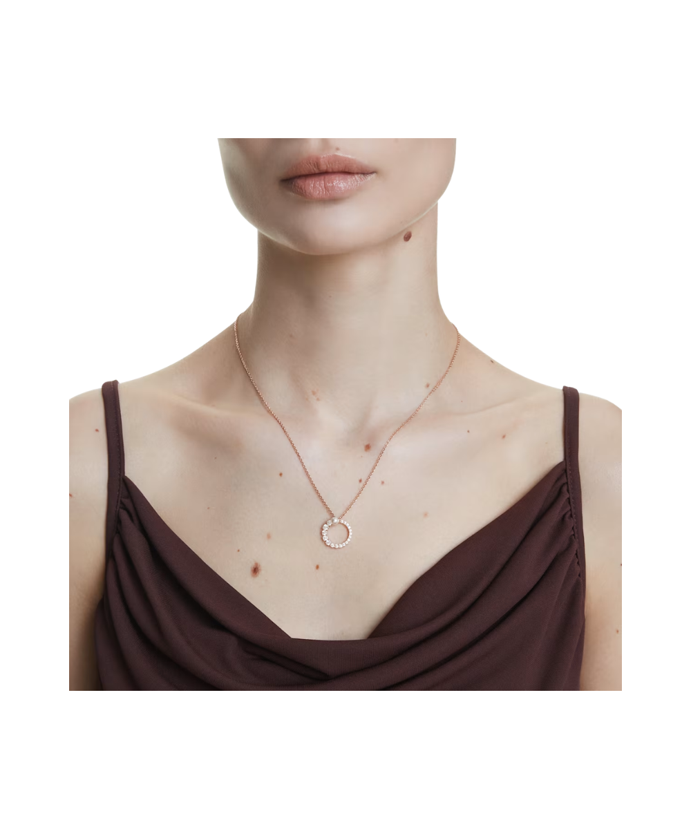 With its refined silhouette and modern detailing, this elegant Matrix pendant attracts attention. Suspended from a delicate chain, the rose gold-tone jewelry features a ring of clear Swarovski Zirconia, in sizes ranging from small to large, and bookended with a white Swarovski Crystal Pearl at the center. Style with a monochrome outfit for maximum effect.