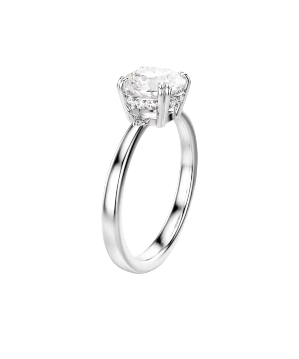 Shining like a star, this Stilla ring is ready to become your new favorite. The elegant princess-cut crystal is set in a double-prong setting and is enhanced with a pavé gallery. Wear solo or stacked with different metal tones for a contemporary finish.