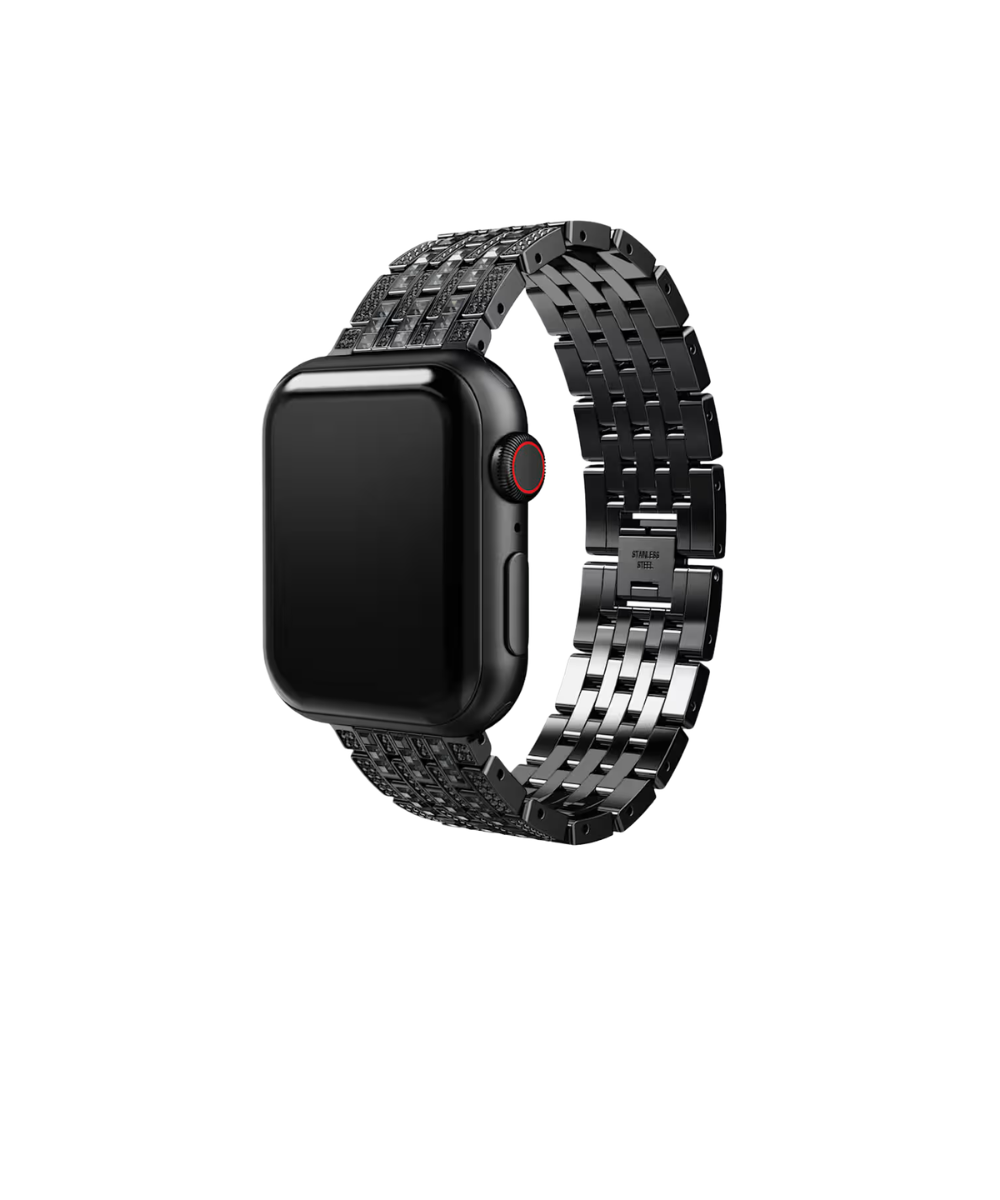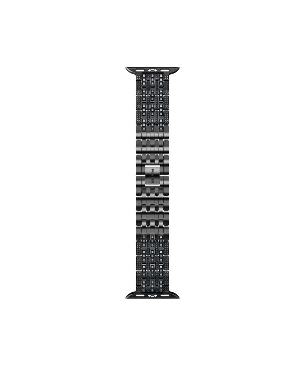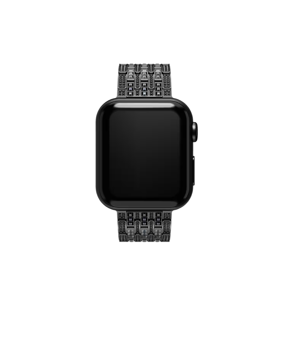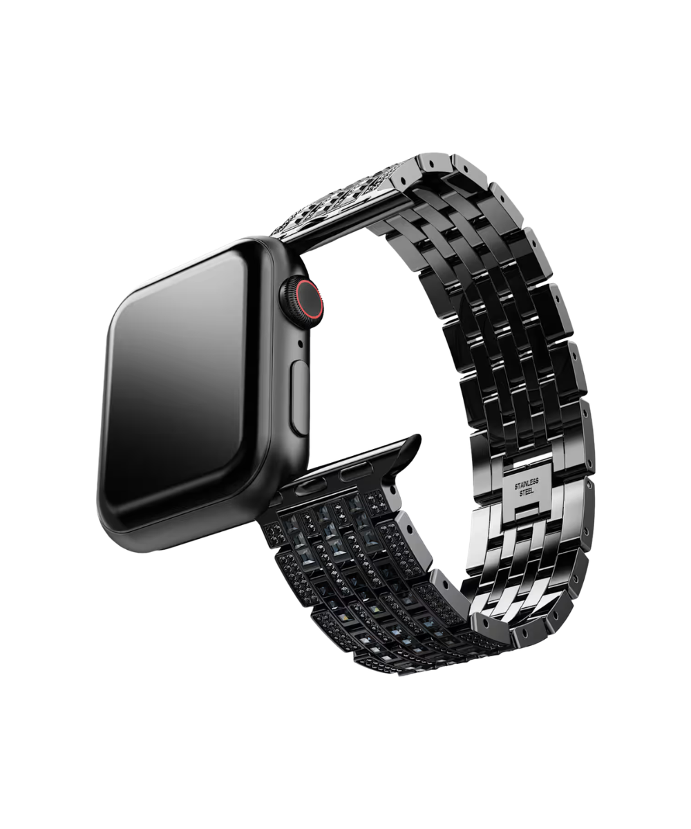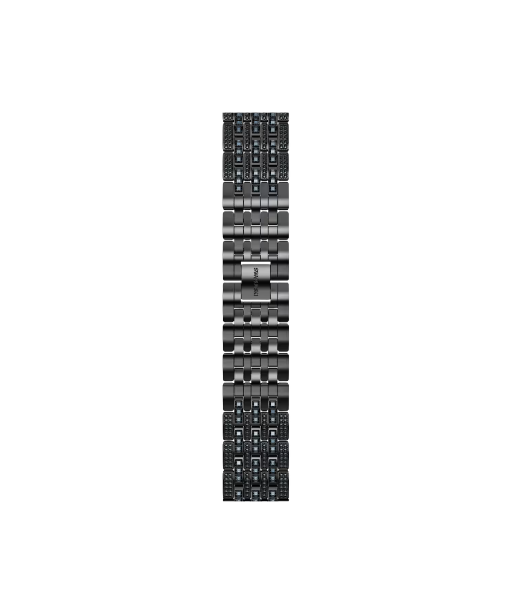 Keep time in style with this striking strap crafted for compatibility with Apple Watch®. The eye-catching design features PVD black tone, fully embellished with silver night crystals. Style with your Swarovski jewelry. This strap suits Apple Watches® sized 40mm or 41mm, including Series 4 - 9 and SE. Apple Watch® is a trademark of Apple Inc. This product is delivered with a standard size bracelet and two additional links, enabling it to be made longer or shorter with the help of our instore staff.