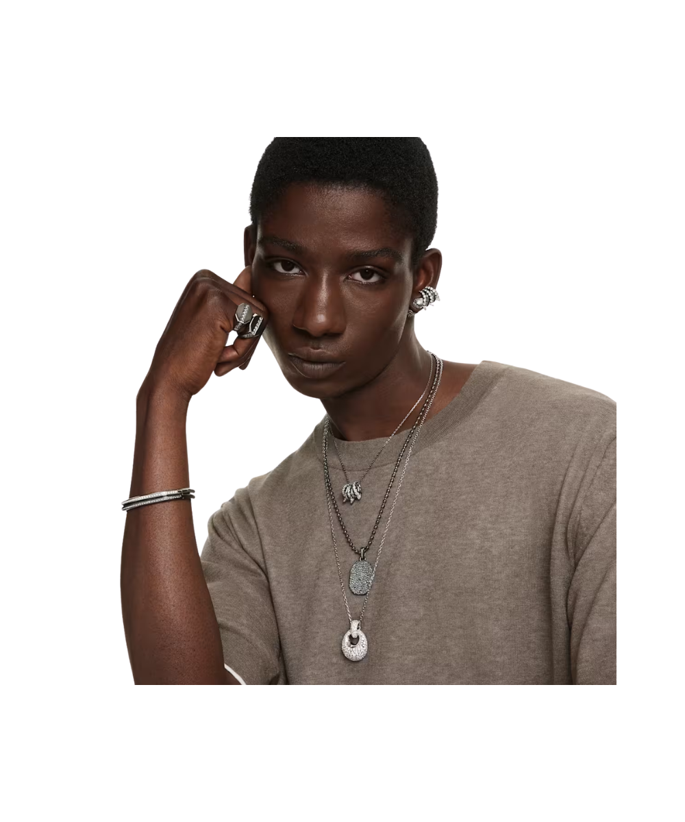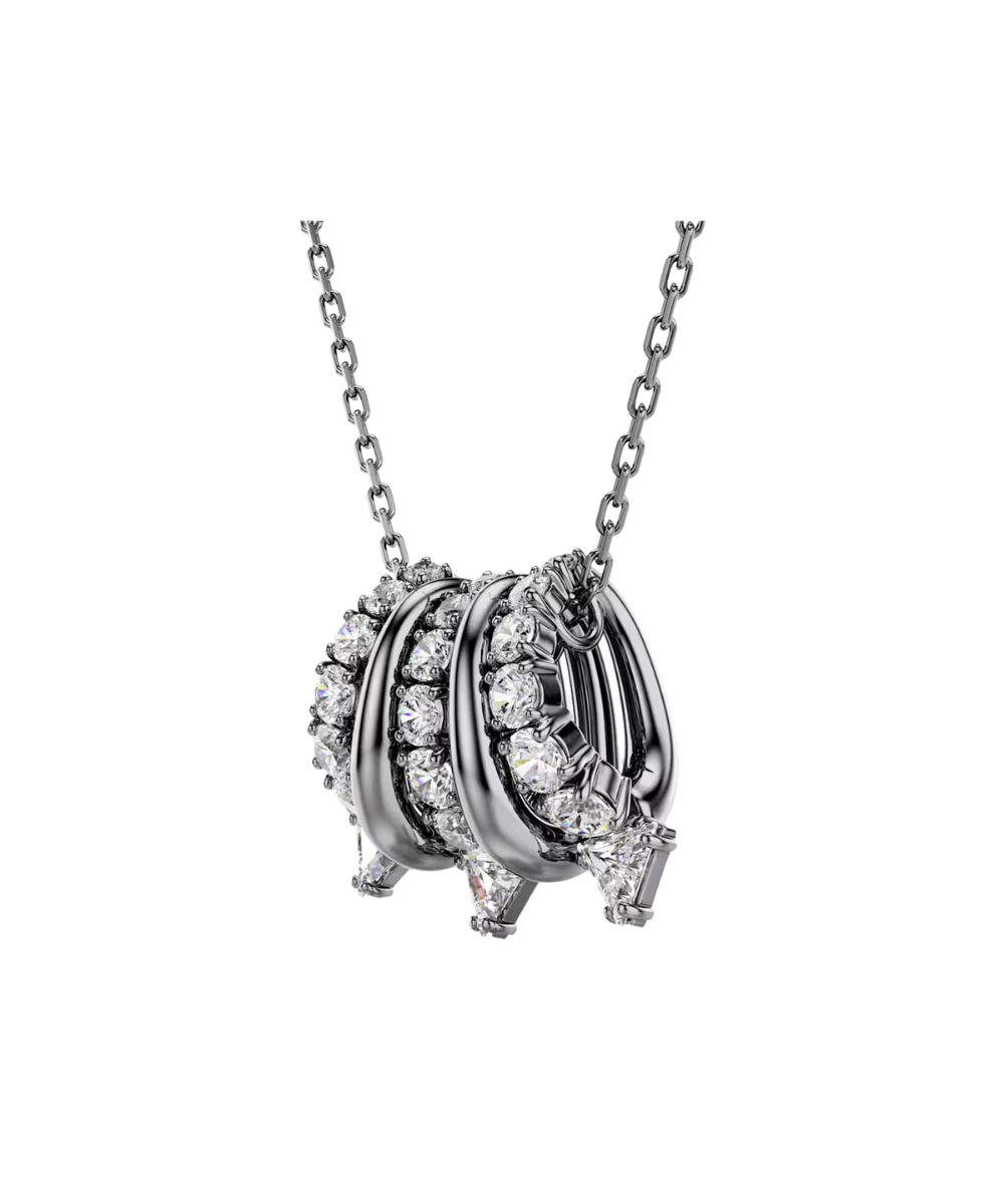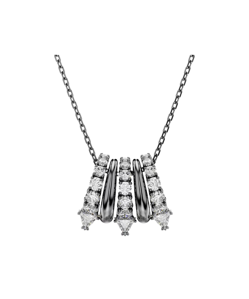 A striking and alternative look for everyday wear. This ruthenium plated pendant is suspended from a delicate chain and features five separate links, including metallic spirals and clear Swarovski Zirconia. The spiky tips add a contemporary finish and match perfectly with the shimmering ear cuffs from the same expressive family.