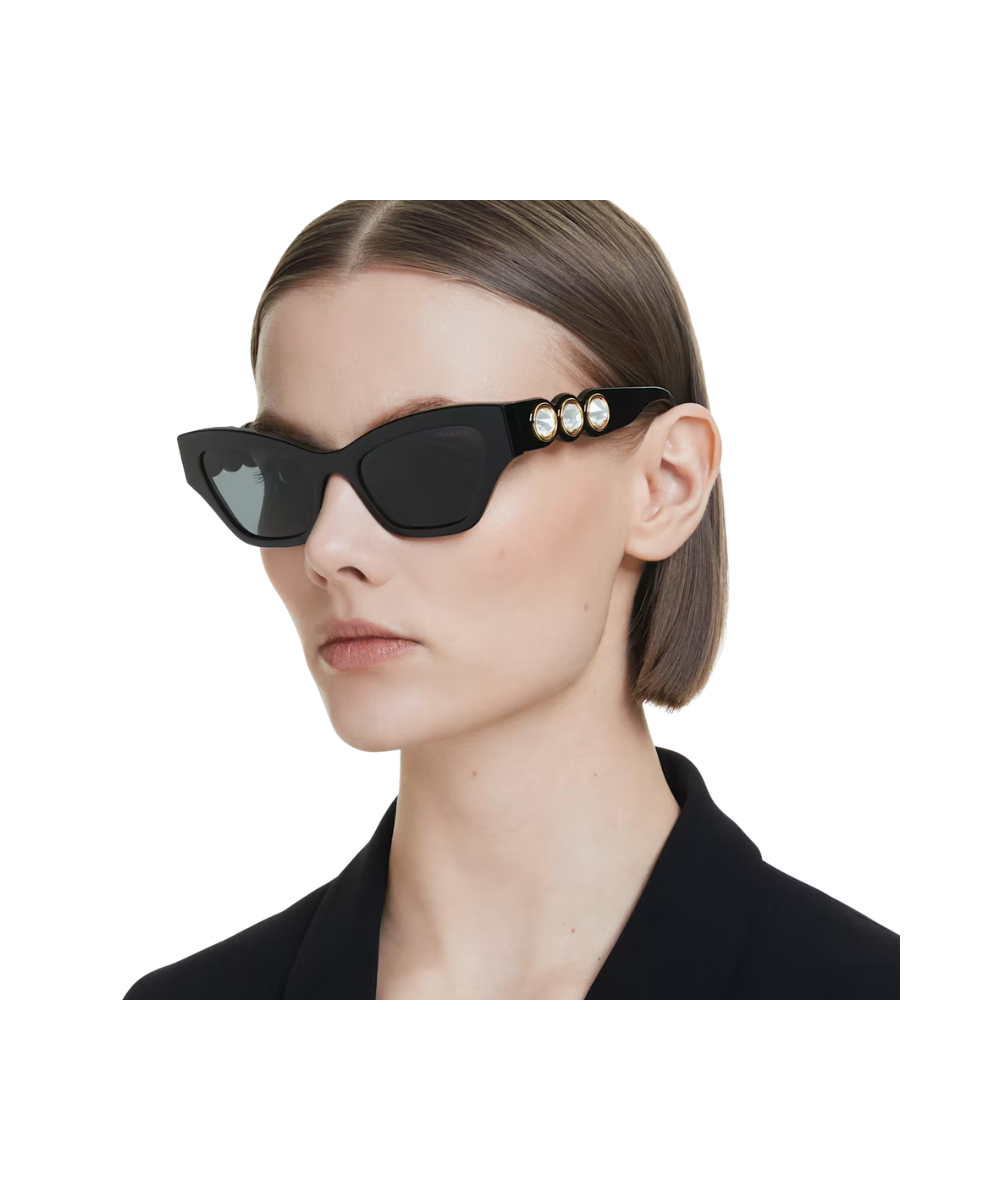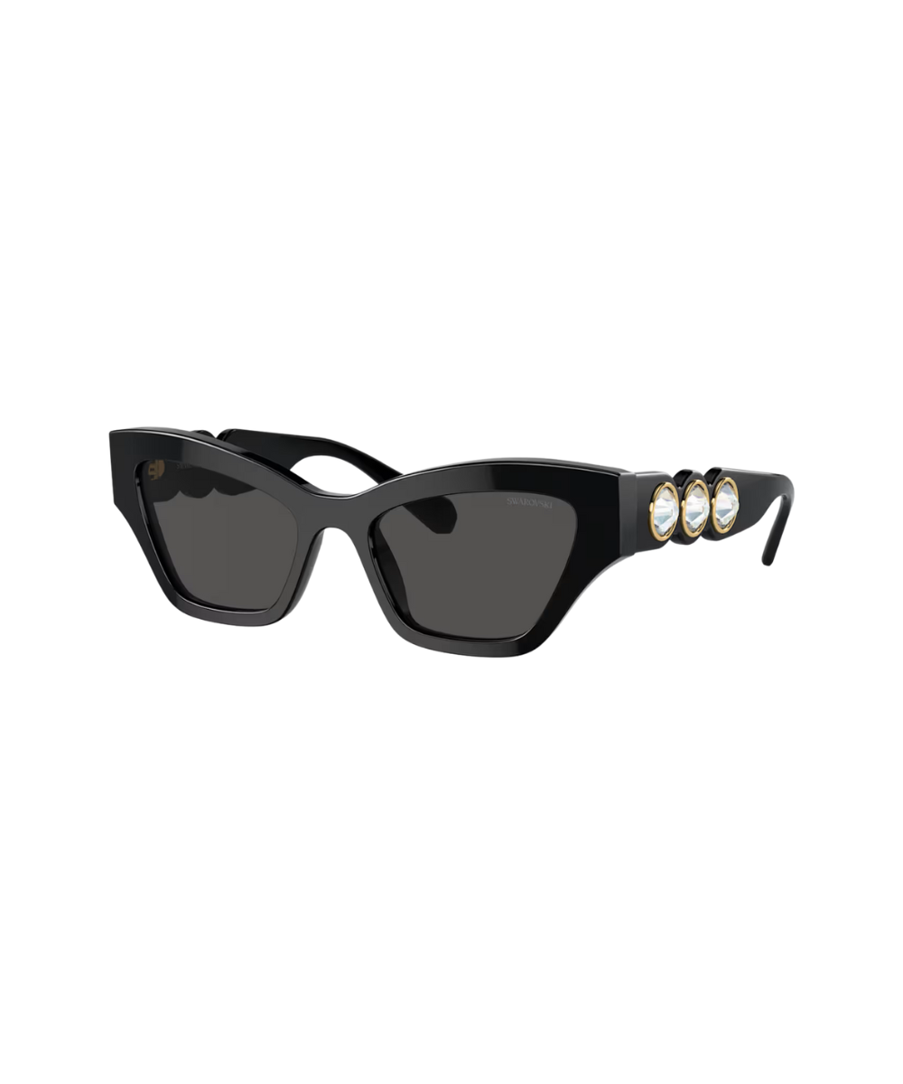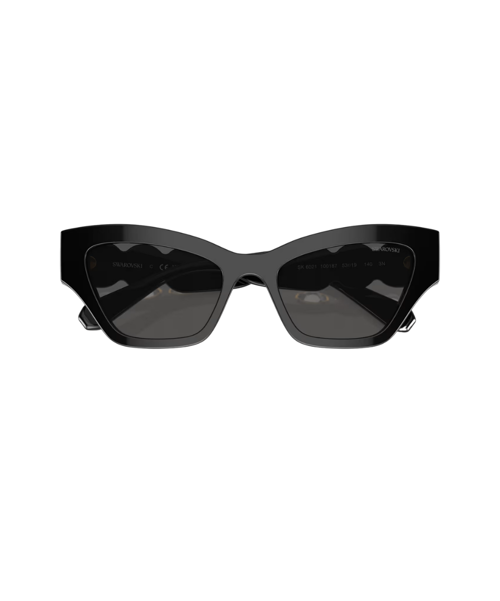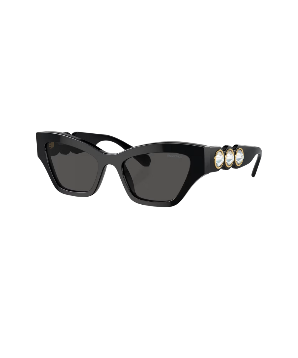 Crafted with a sleek and powerful shape, these striking sunglasses take inspiration from Swarovski’s Imber family. The design features black acetate frames and black lenses, along with three large clear crystals on each temple, placed in a gold-tone bezel setting. These luminous additions provide a truly head-turning look. Pair with matching jewelry from the Imber family.