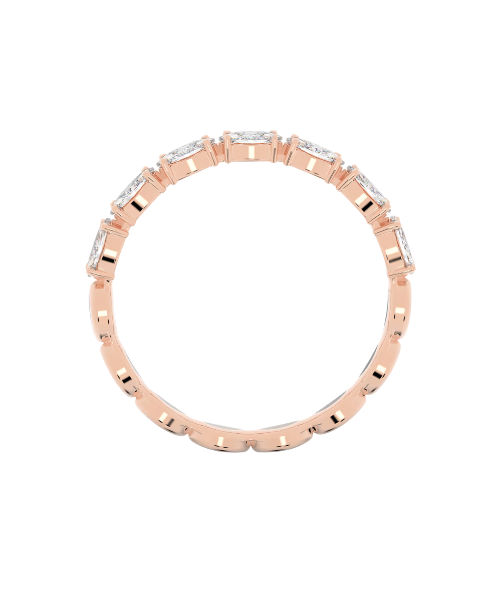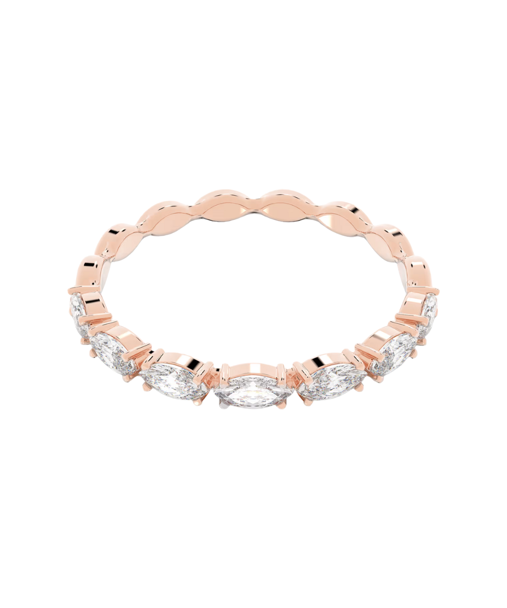 Add a note of minimalist luxury to your look with this gorgeous ring. The front half is embellished with sparkling marquise-shaped stones, making this rose gold-plated accessory is a lovely accent for everyday looks. Stacks beautifully or looks equally good worn alone.